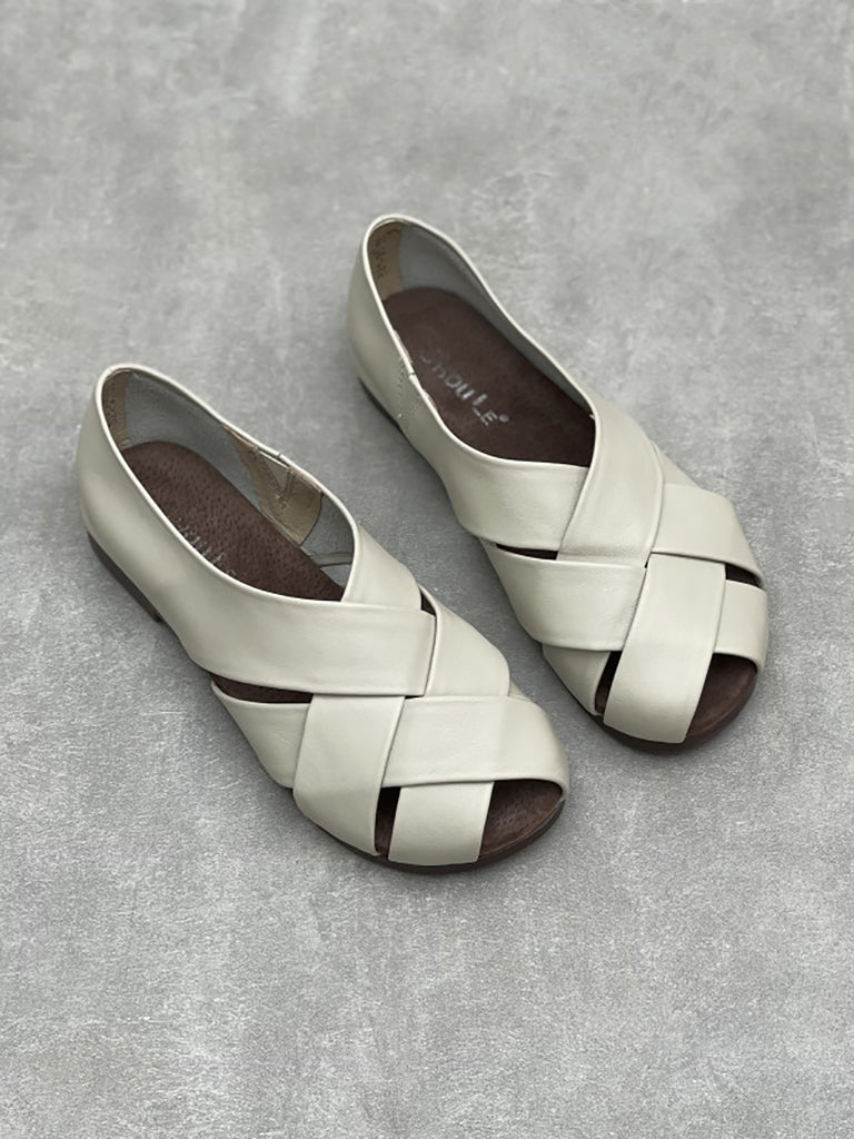 Kvinder Vintage Ægte Læder Spliced Lav Hæl Sko