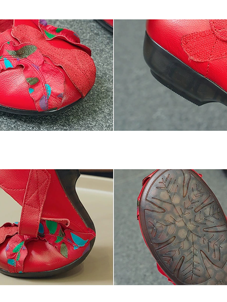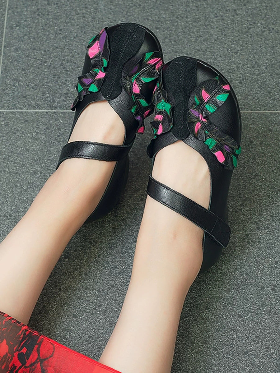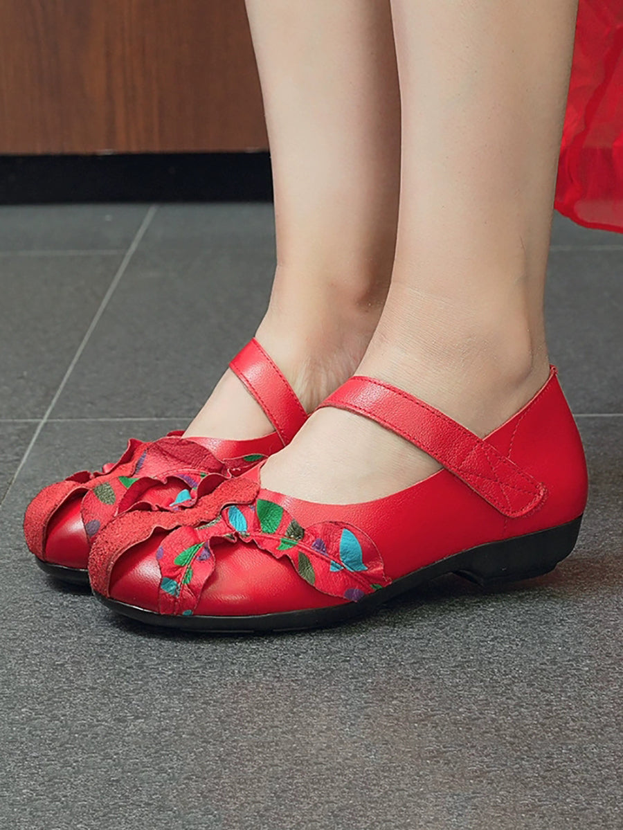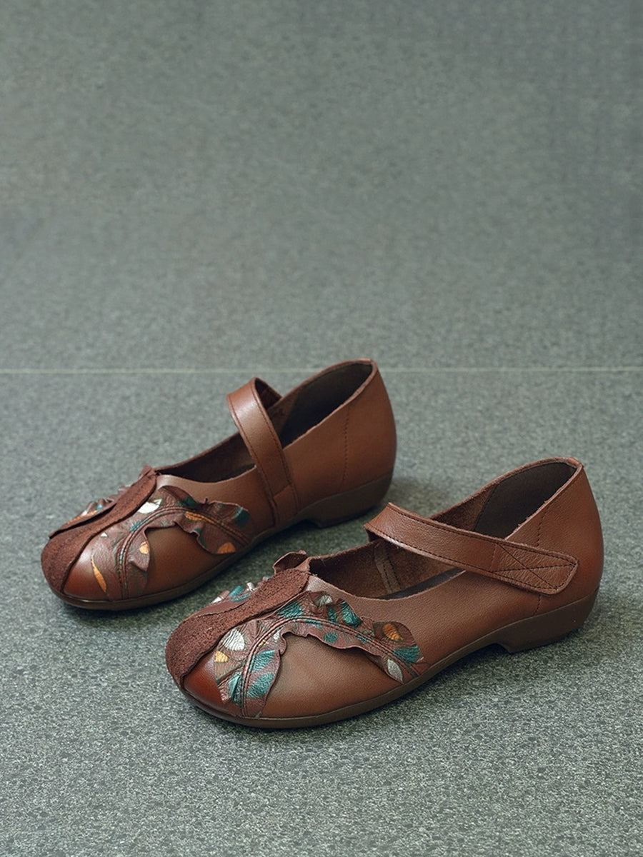 Kvinder Vintage Ægte Læder Spliced Lav Hæl Sko