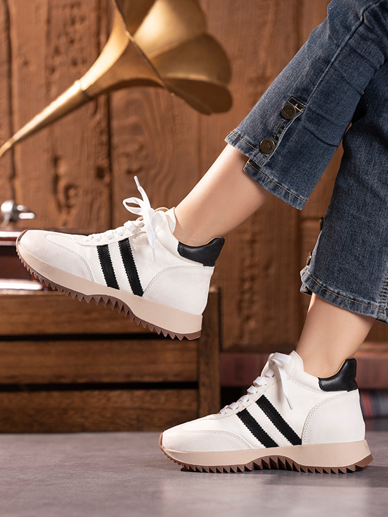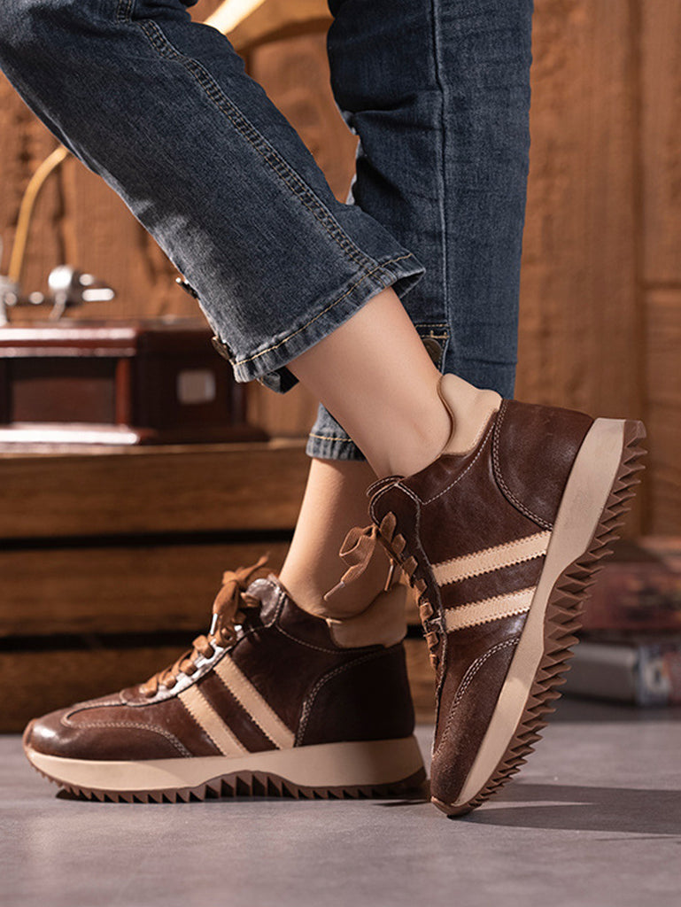 Kvinder Vintage Ægte Læder Spliced Platform Sko