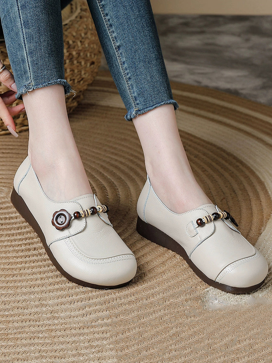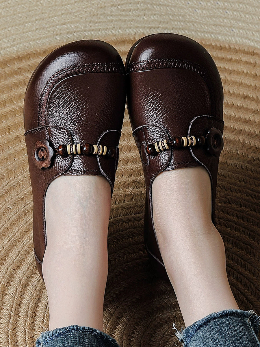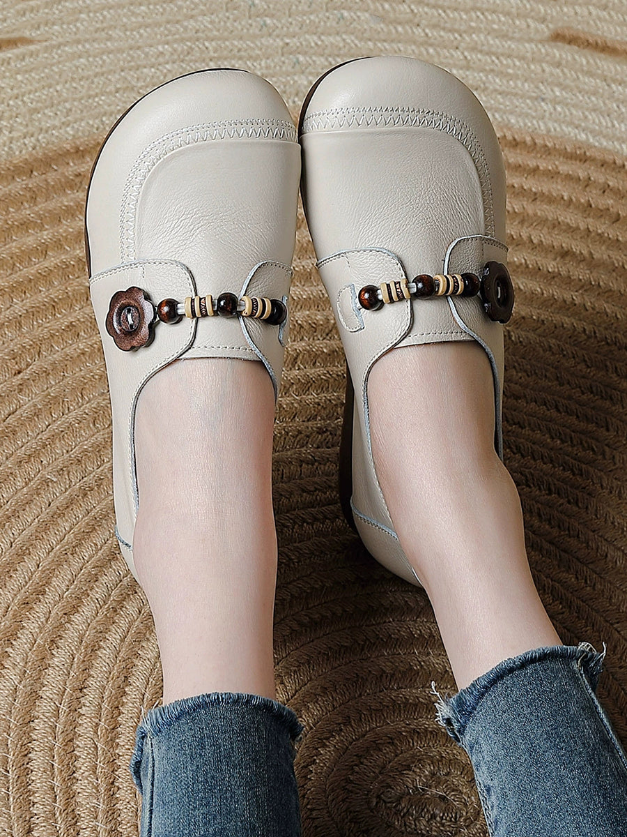 Dame vintage sko i ægte læder med træperler