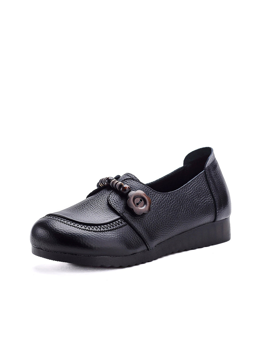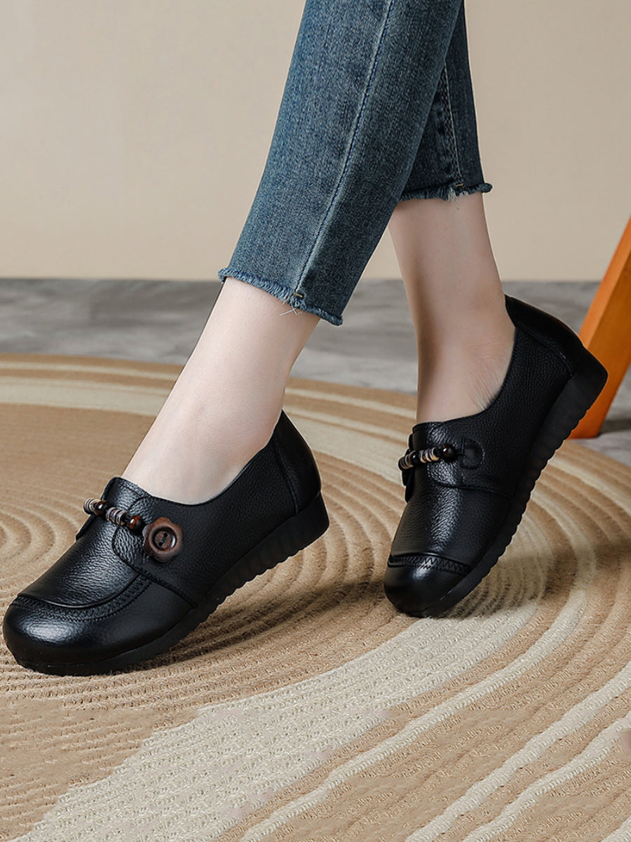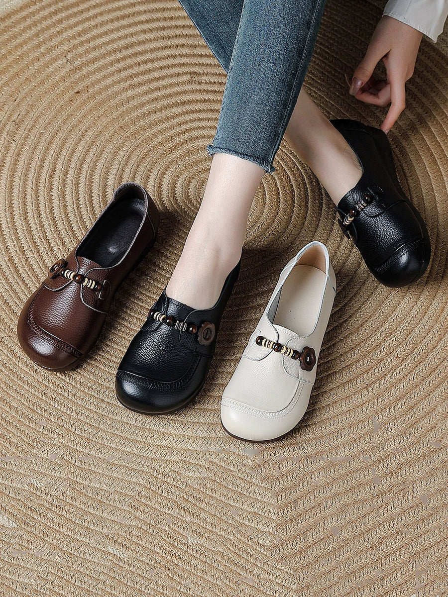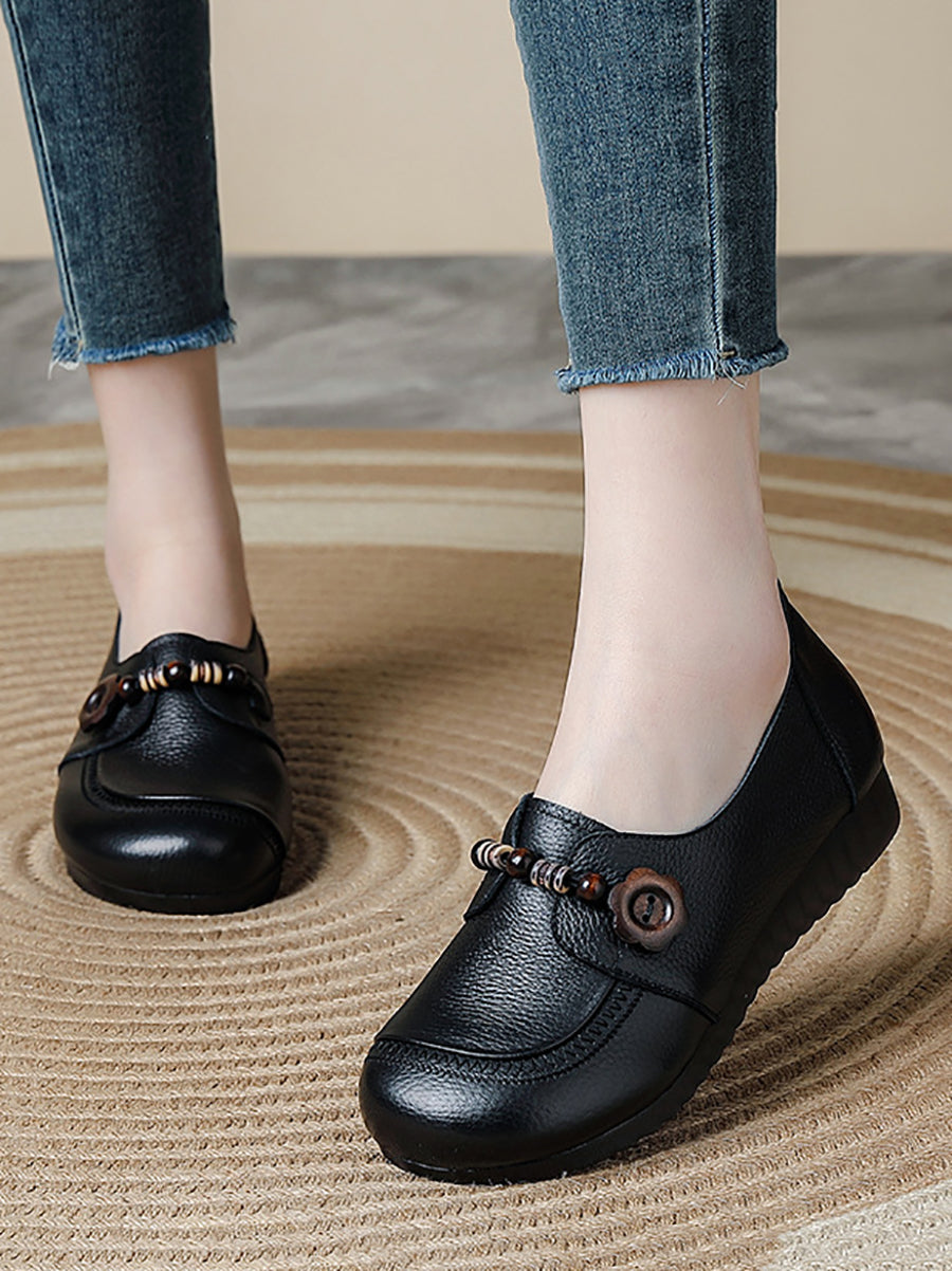 Dame vintage sko i ægte læder med træperler