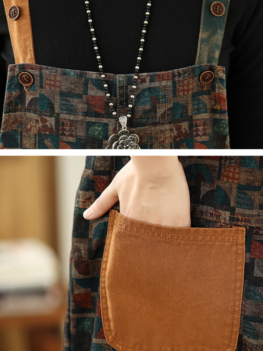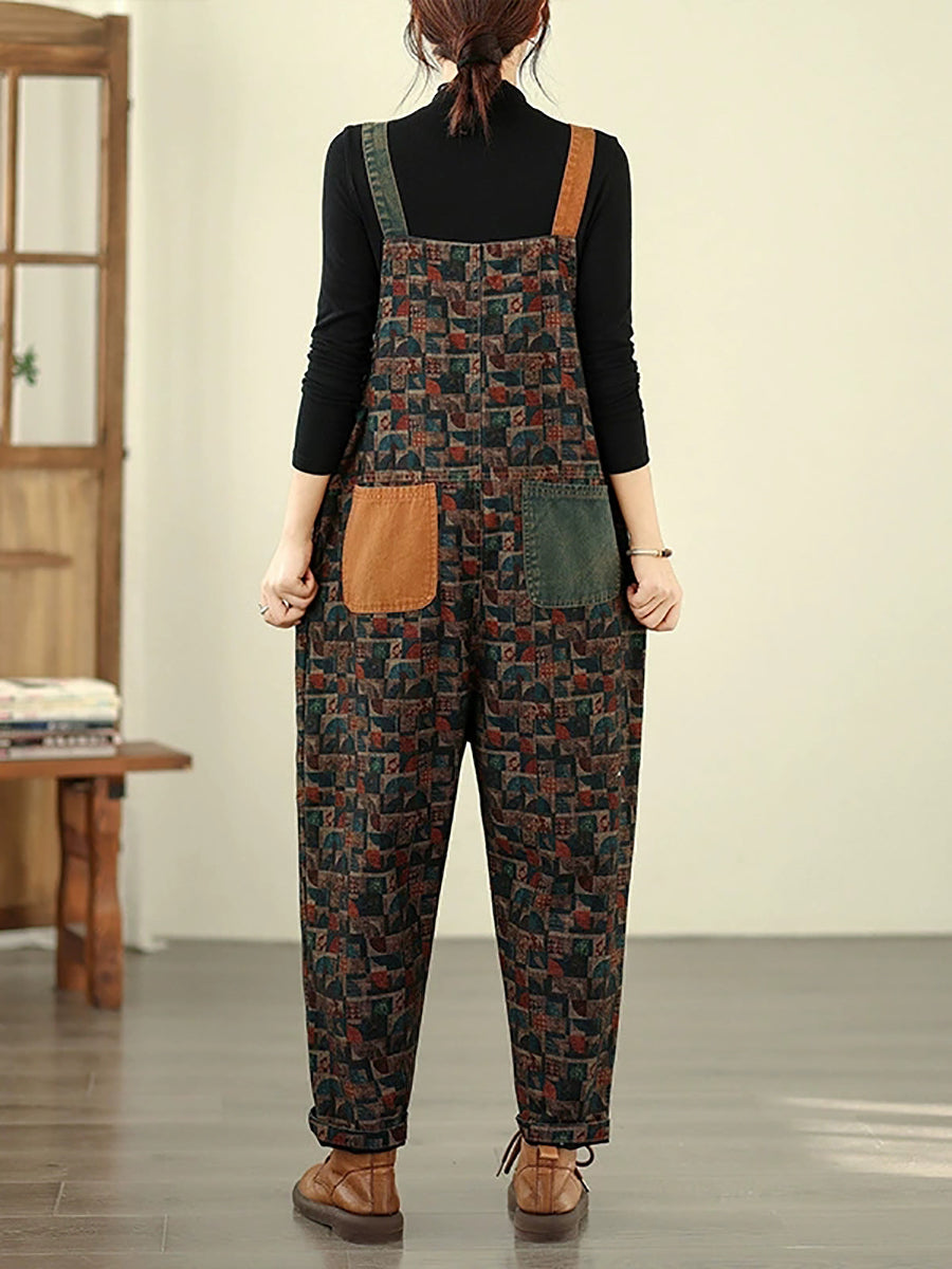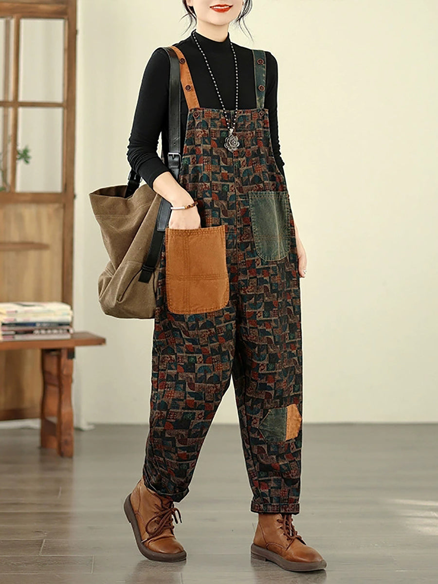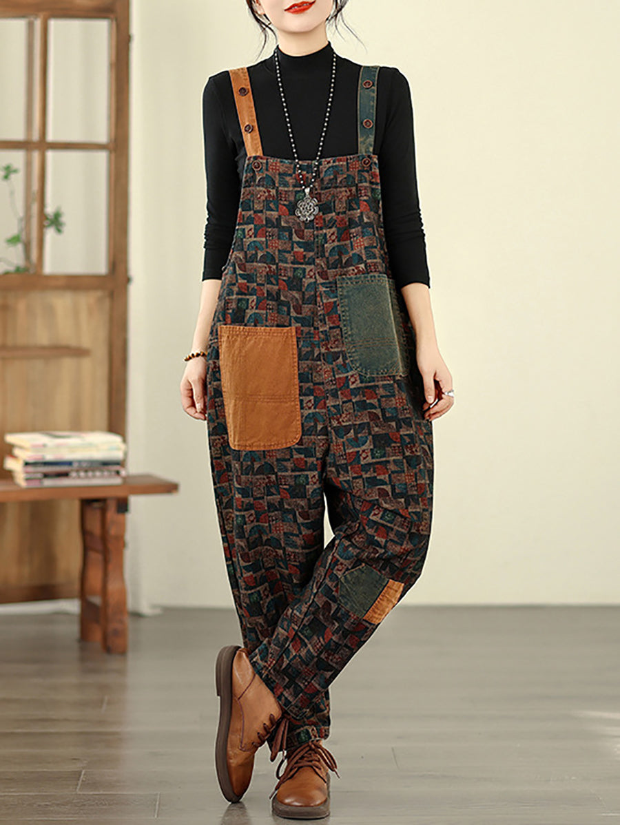 Kvinder Vintage Patchwork Bomuld Løse Denim Jumpsuits
