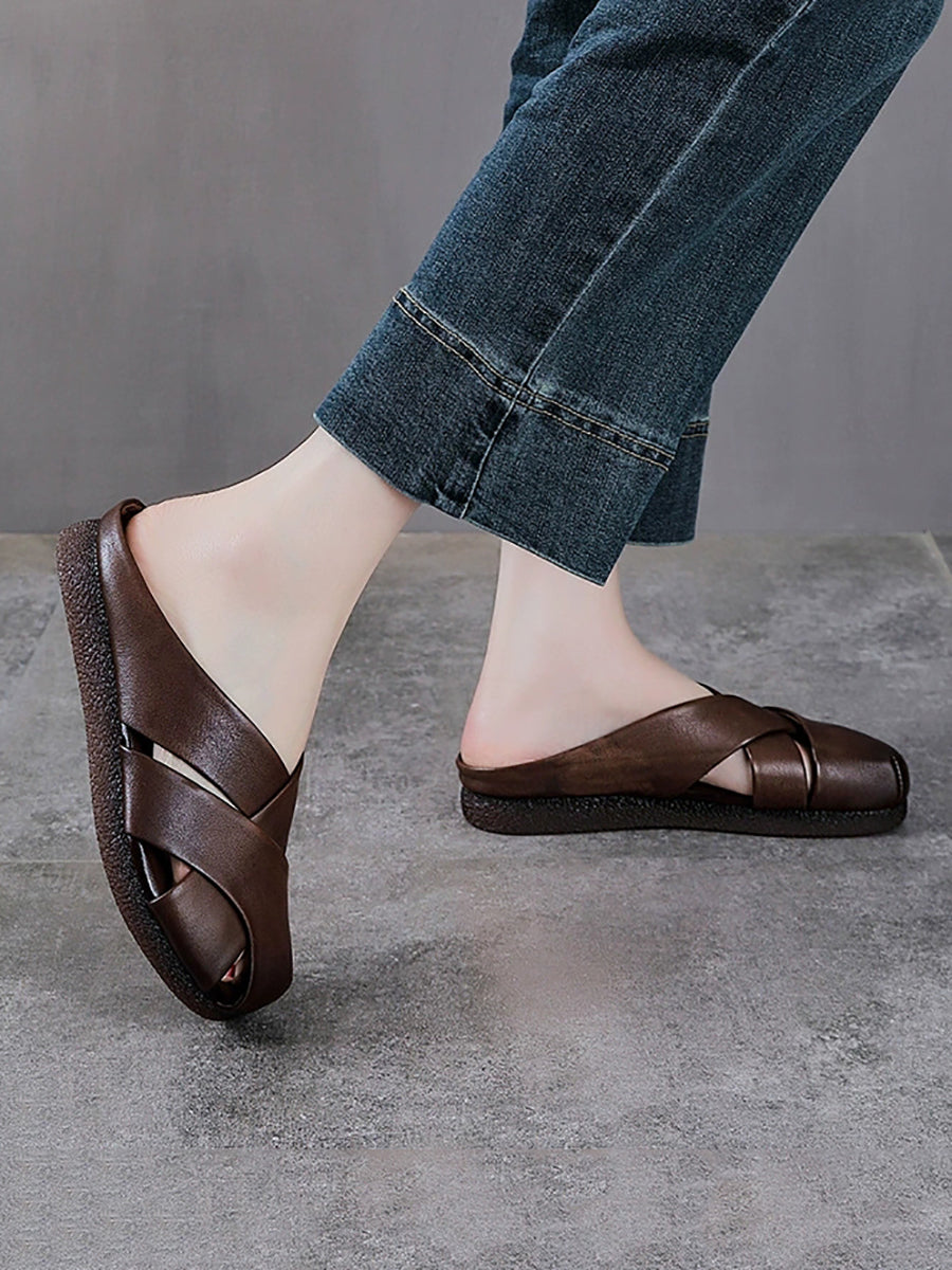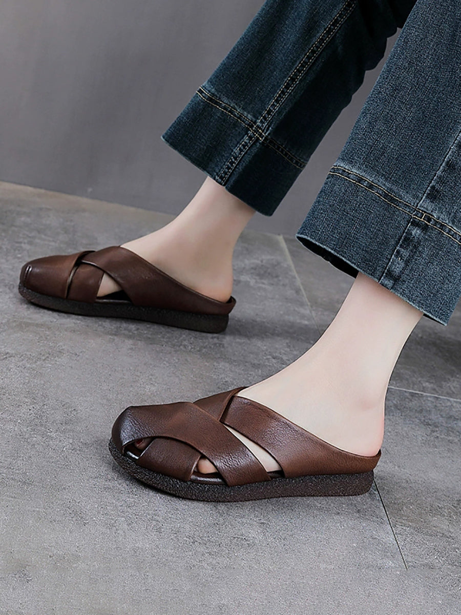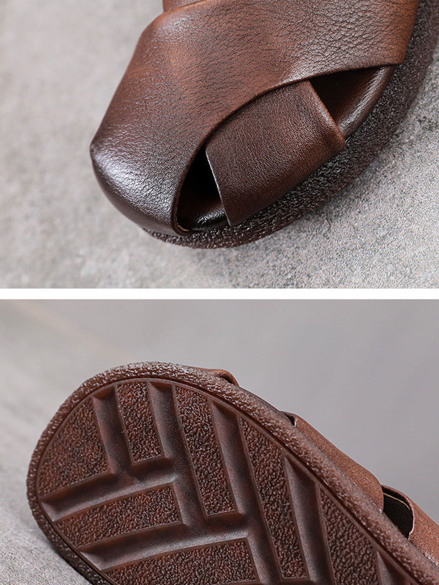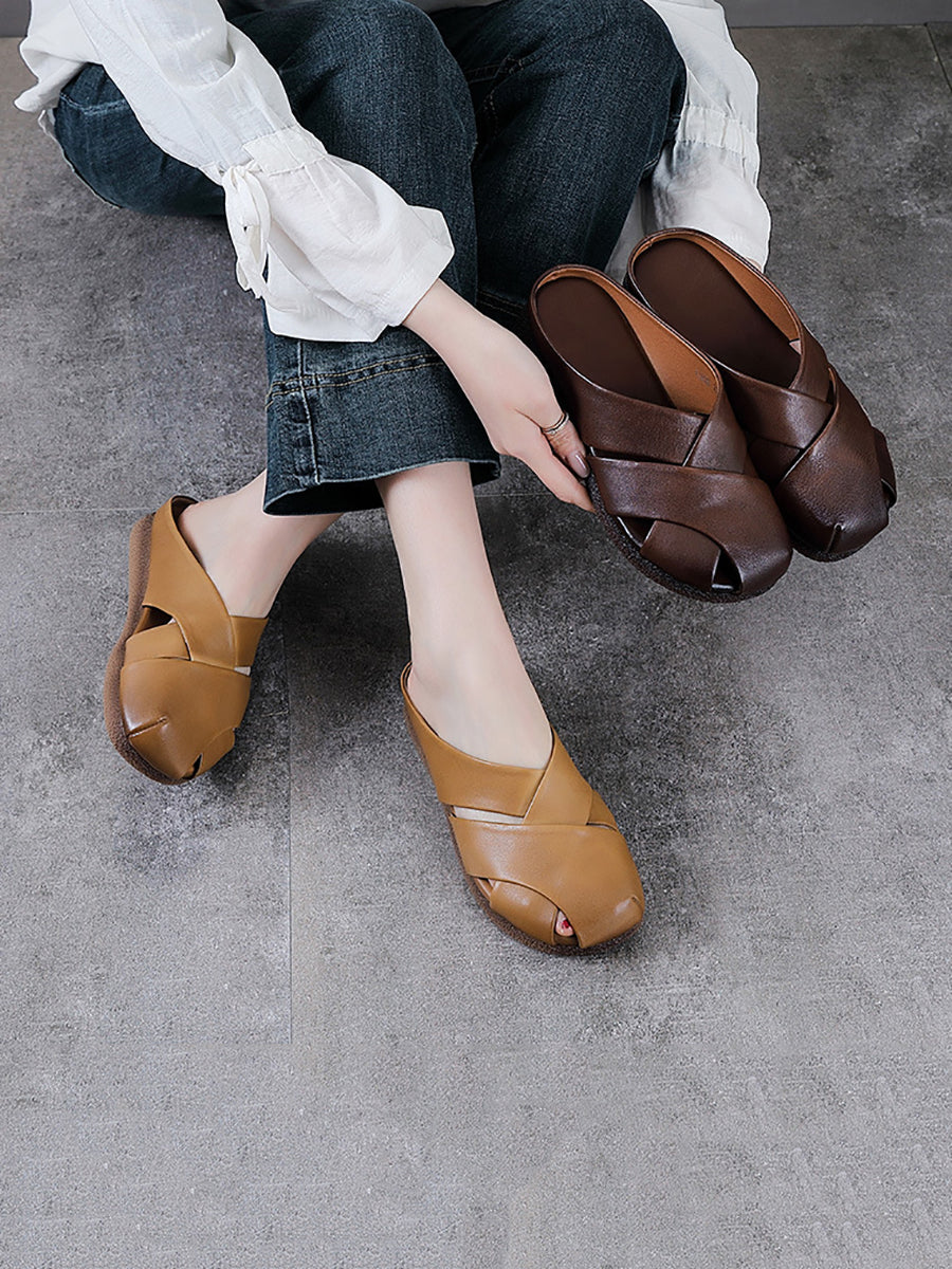Kvinder Vintage Sommer Ægte Læder Vævede Hjemmesko