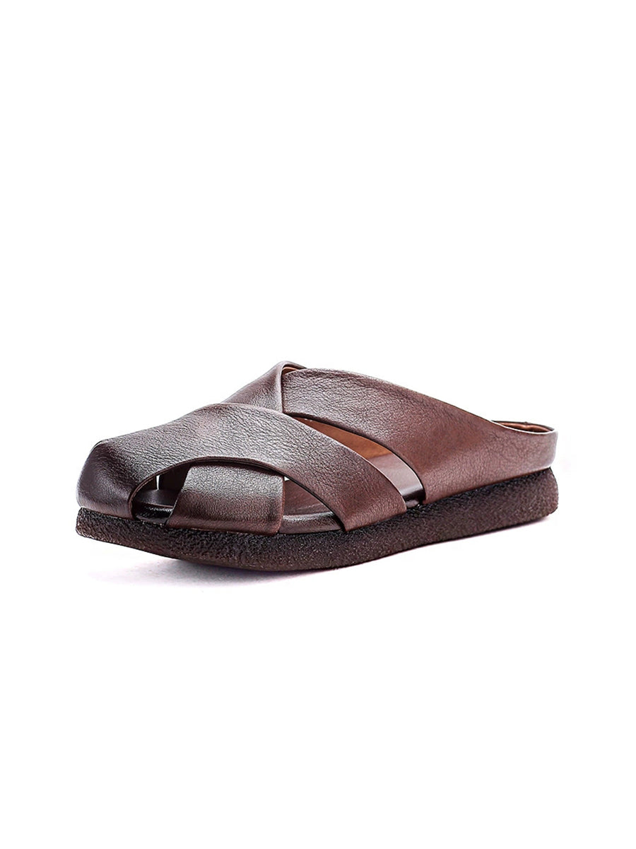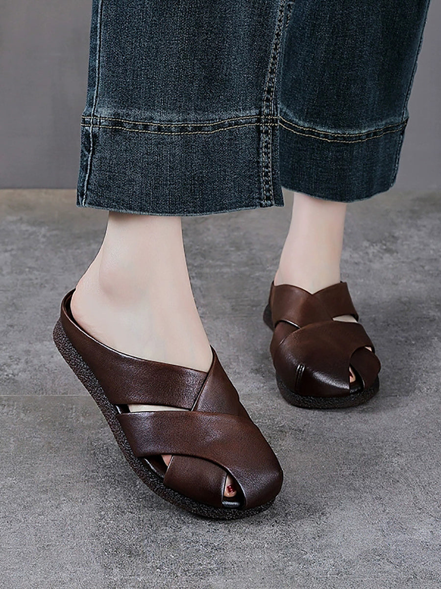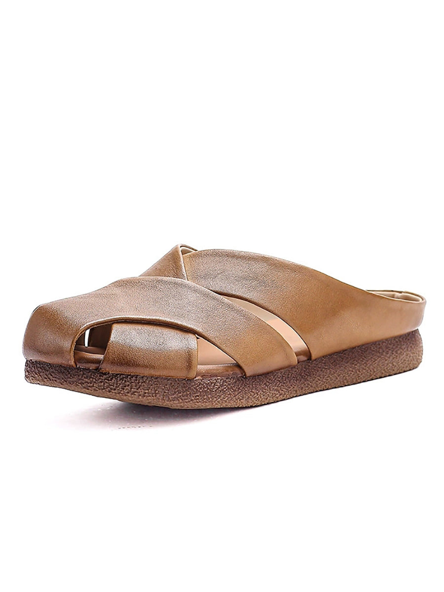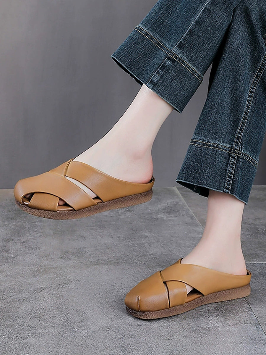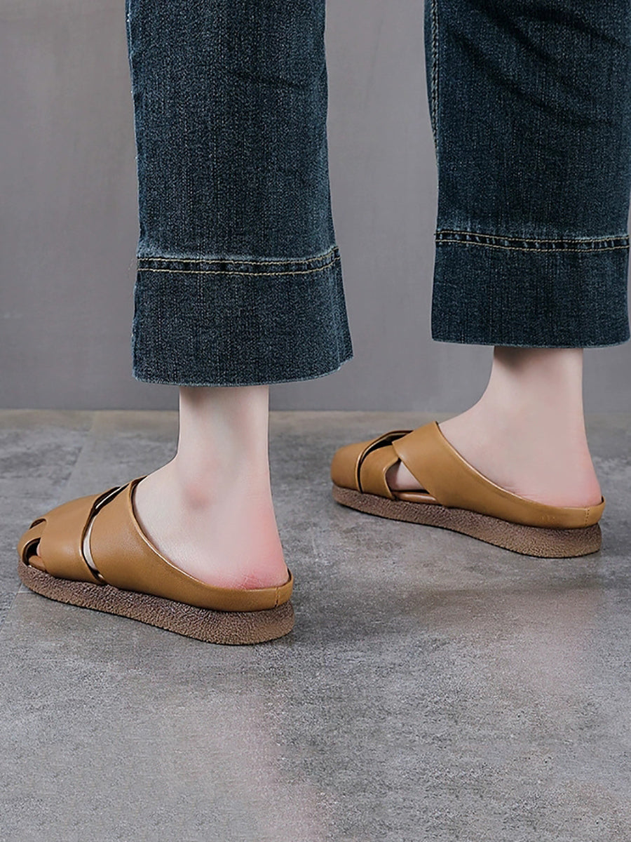 Kvinder Vintage Sommer Ægte Læder Vævede Hjemmesko