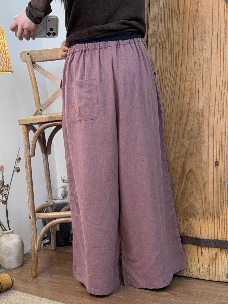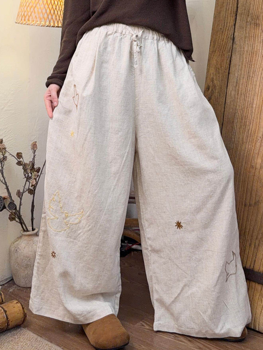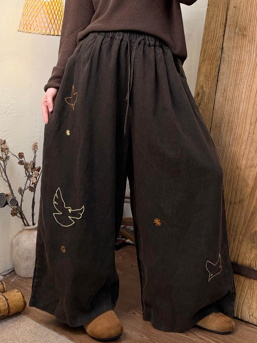Kvinder Vinter Kunstneriske Fuglebroderi Brede Benbukser