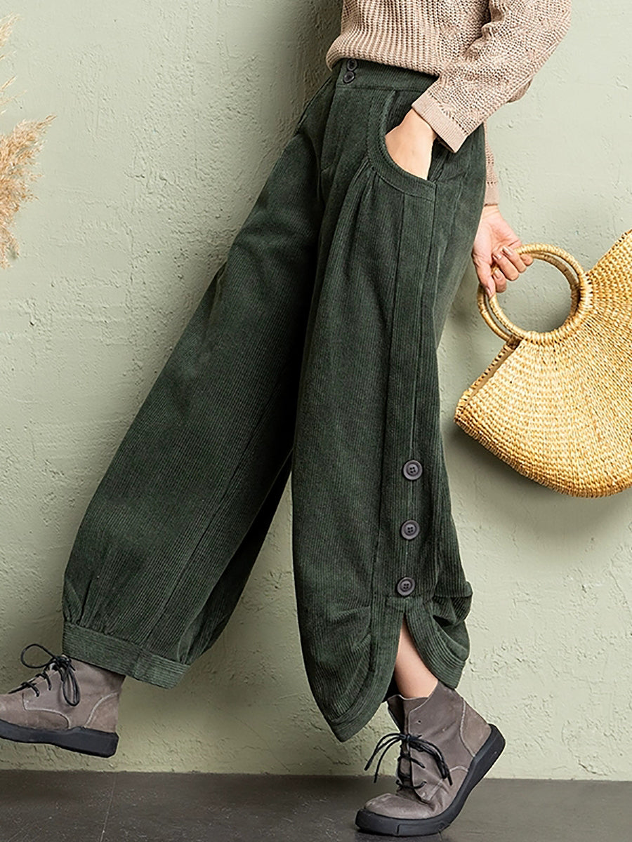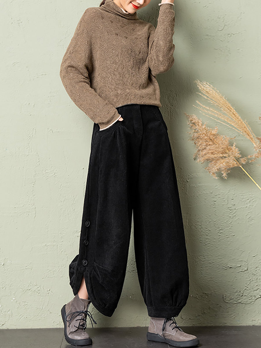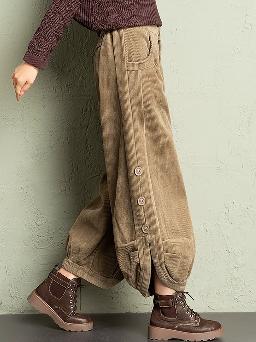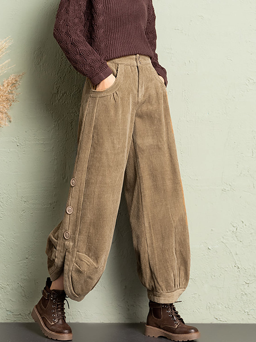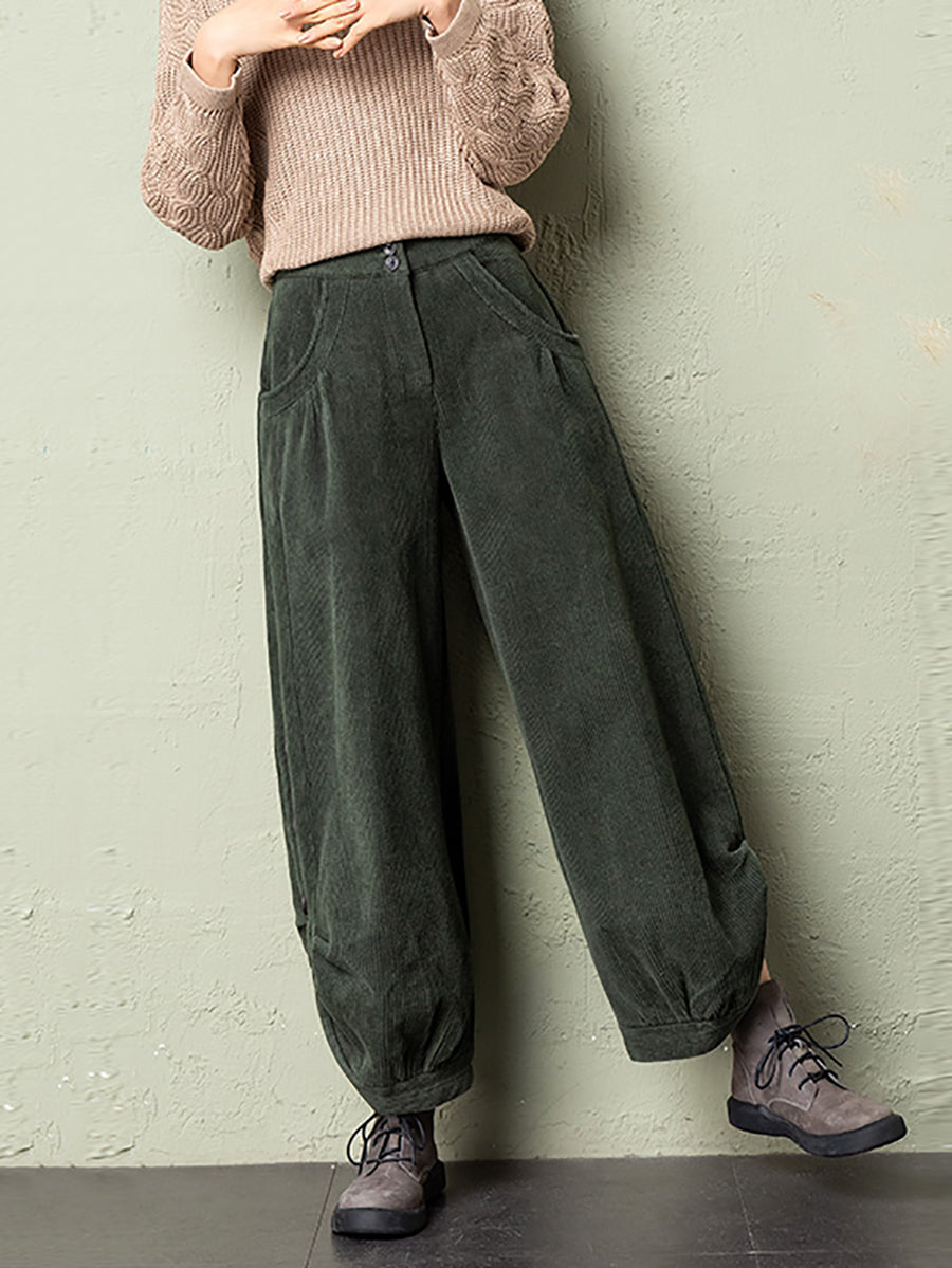 Kvinder Vinter Afslappet Ren Farve Corduroy Bloomers
