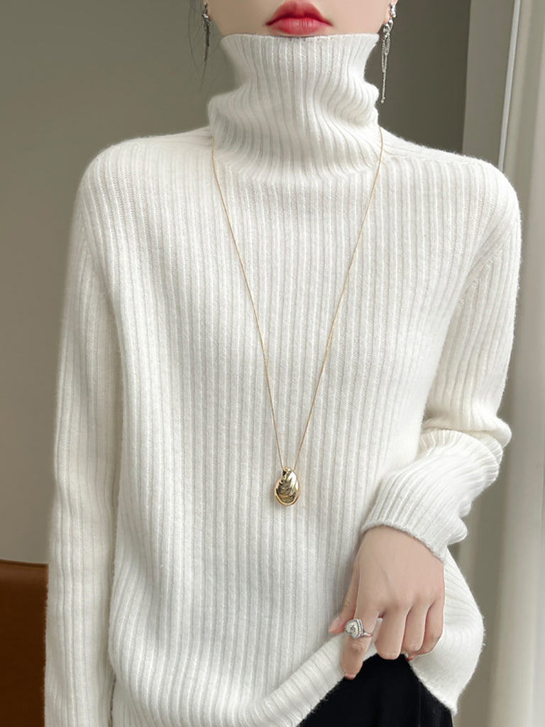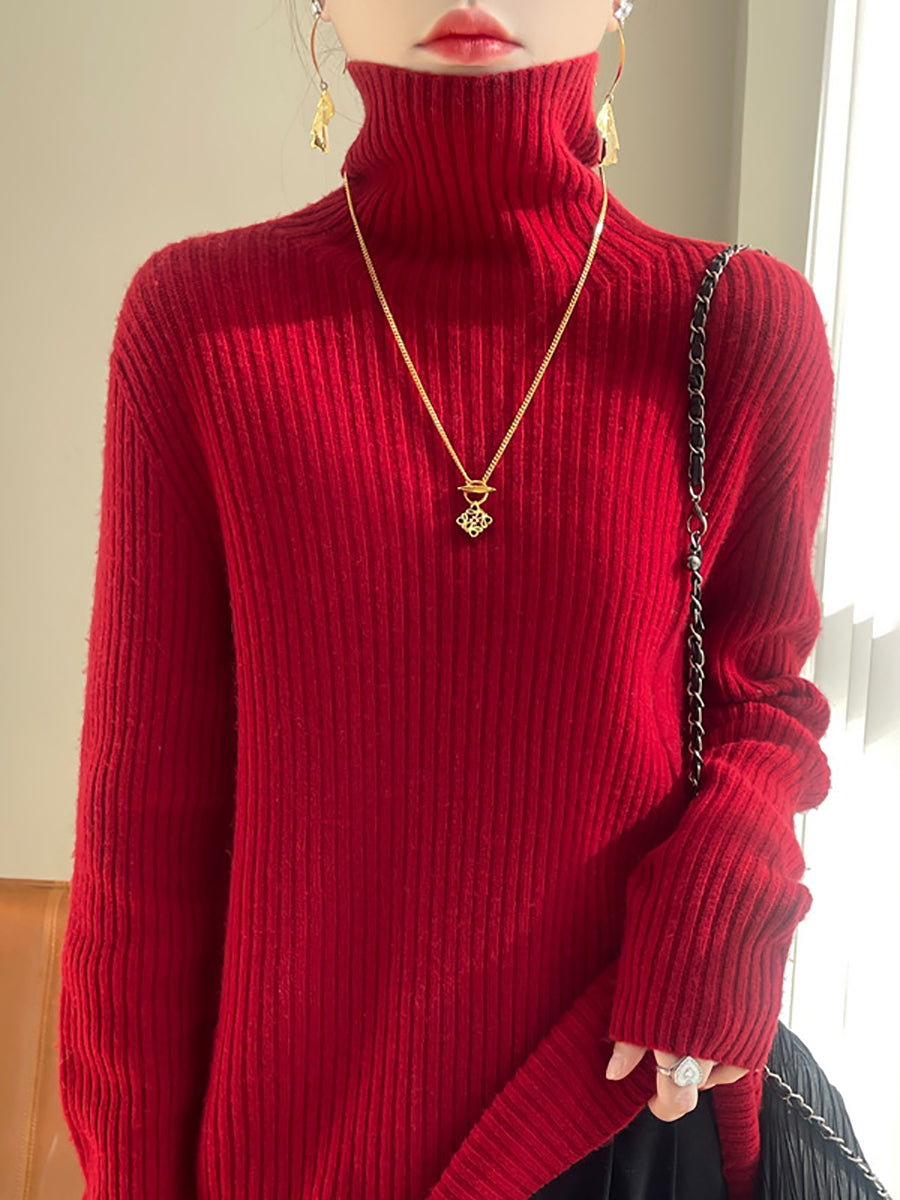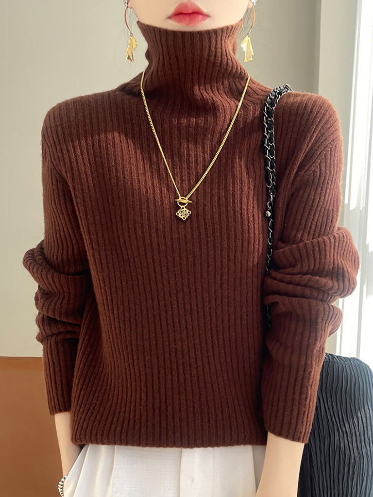 Kvinder Vinter Casual Ren Farve Strikket Rullekravetrøje