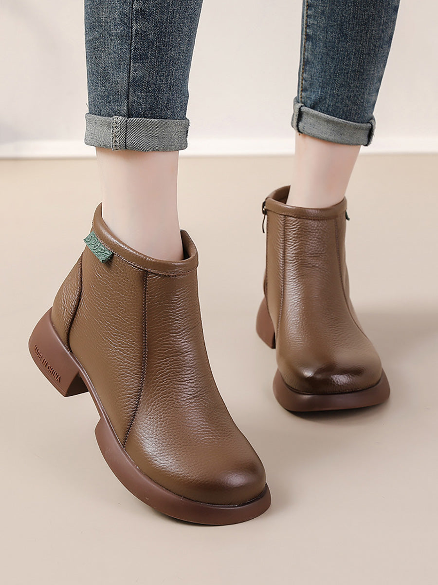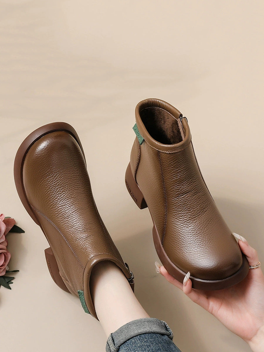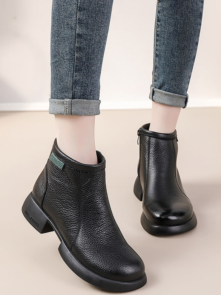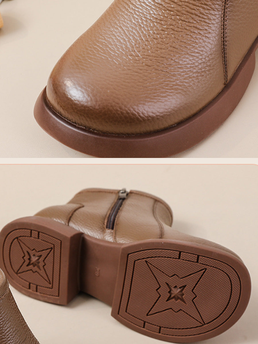 Kvinders vinter elegante ægte læder lavhælede støvler