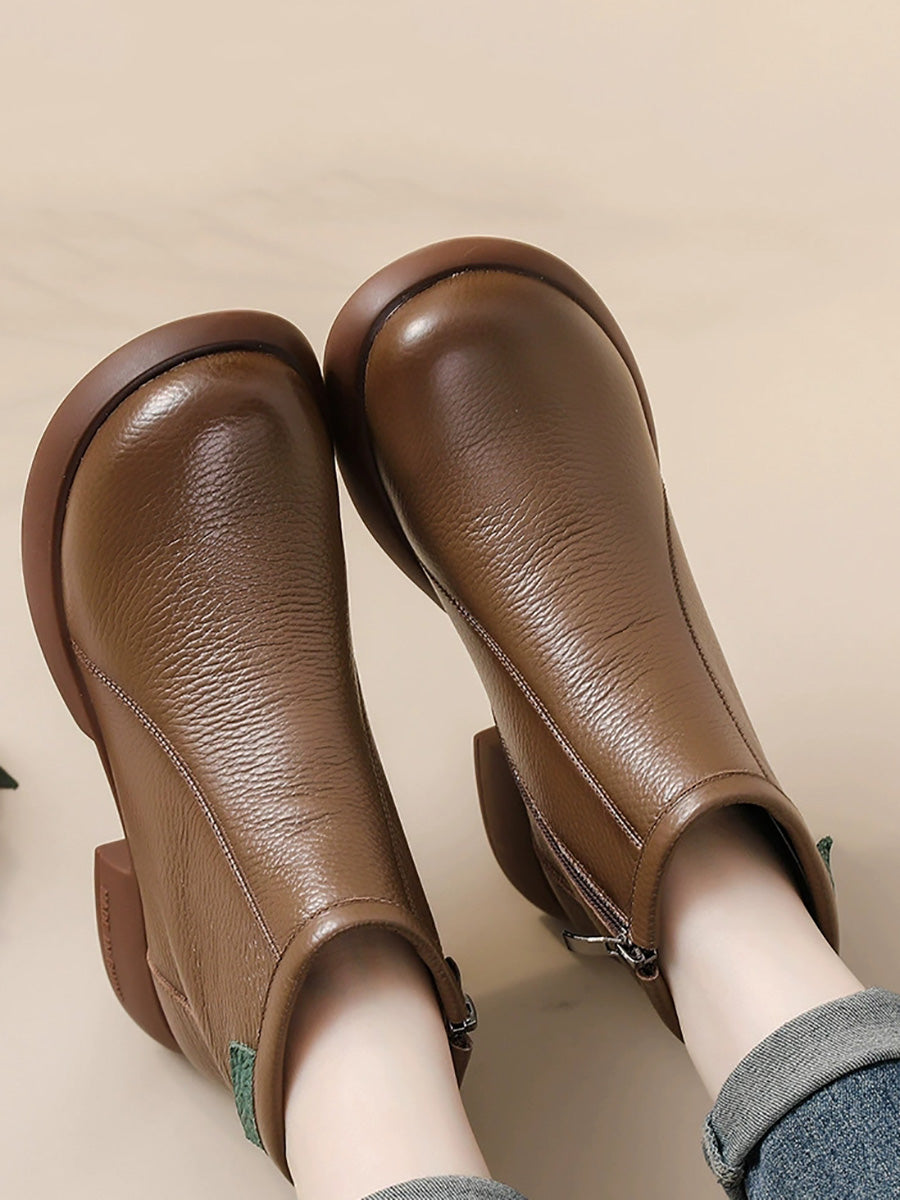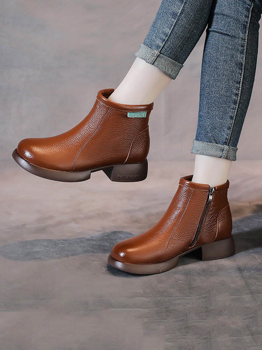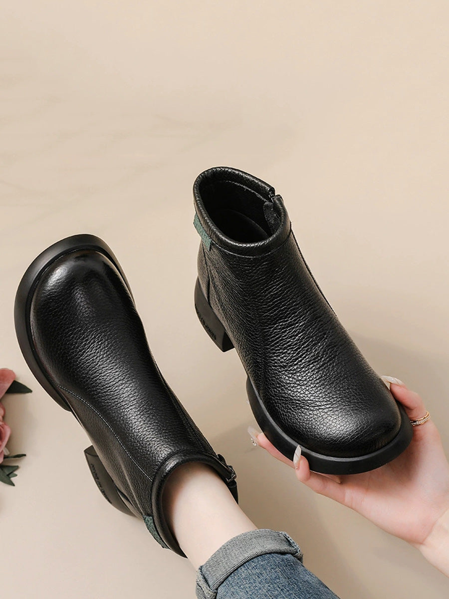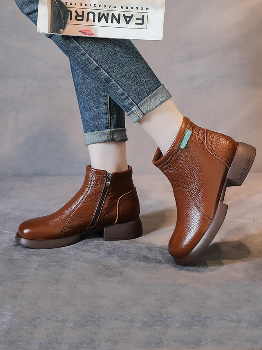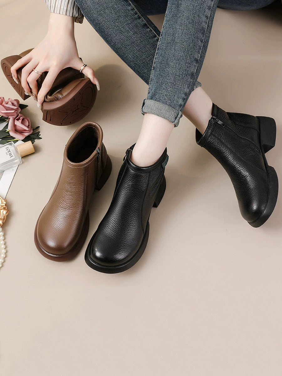 Kvinders vinter elegante ægte læder lavhælede støvler