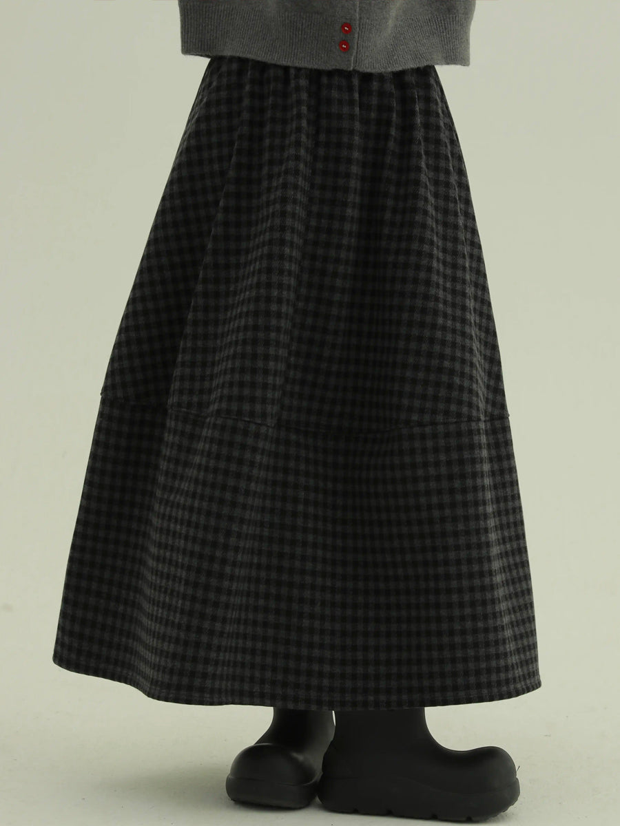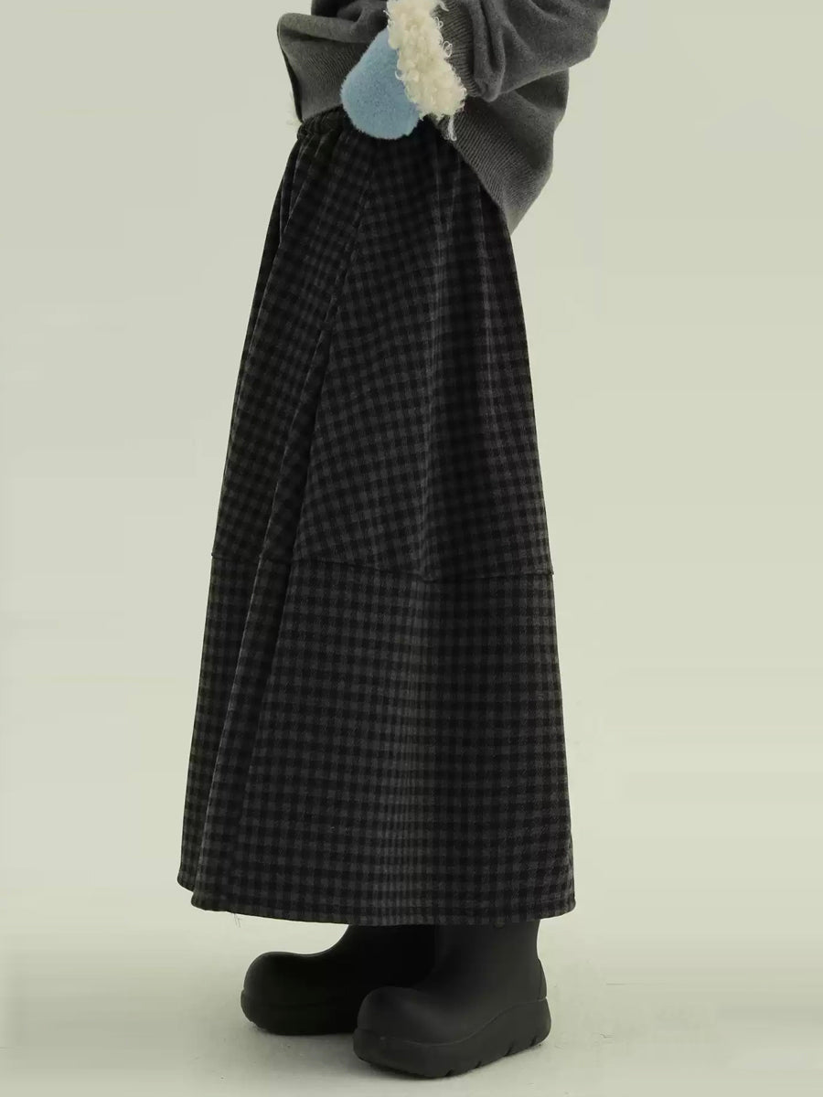 Kvinder Vinter Fleeceforet Ternet A-formet Nederdel