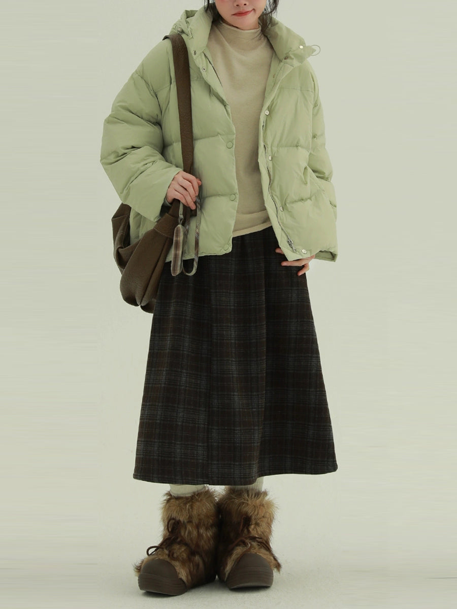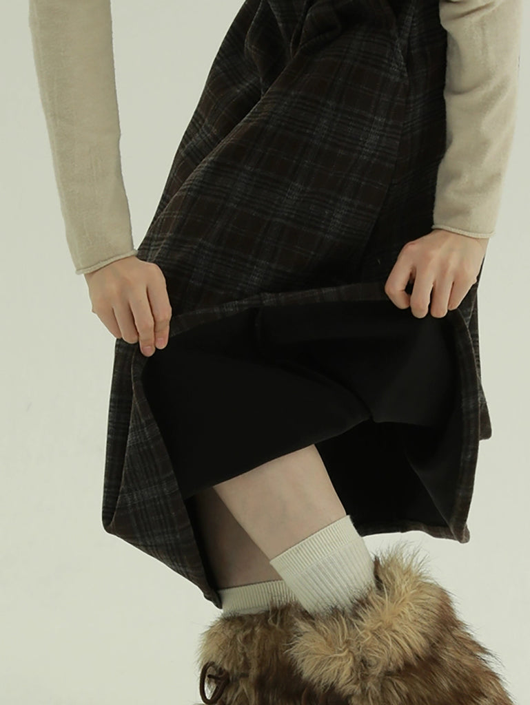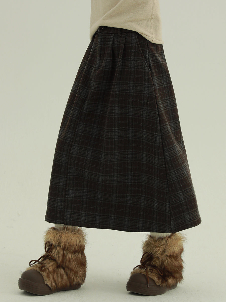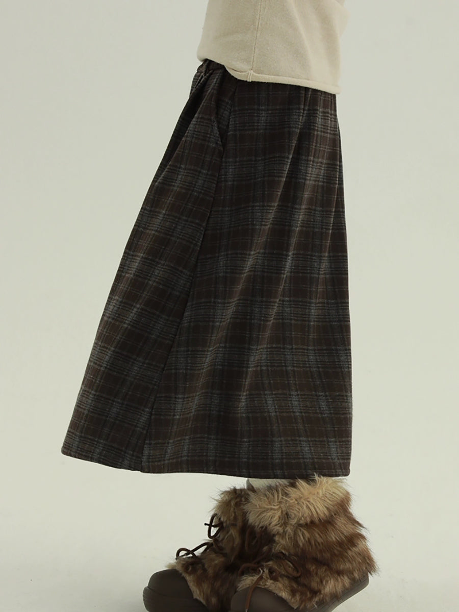 Kvinder Vinter Fleeceforet Ternet A-formet Nederdel