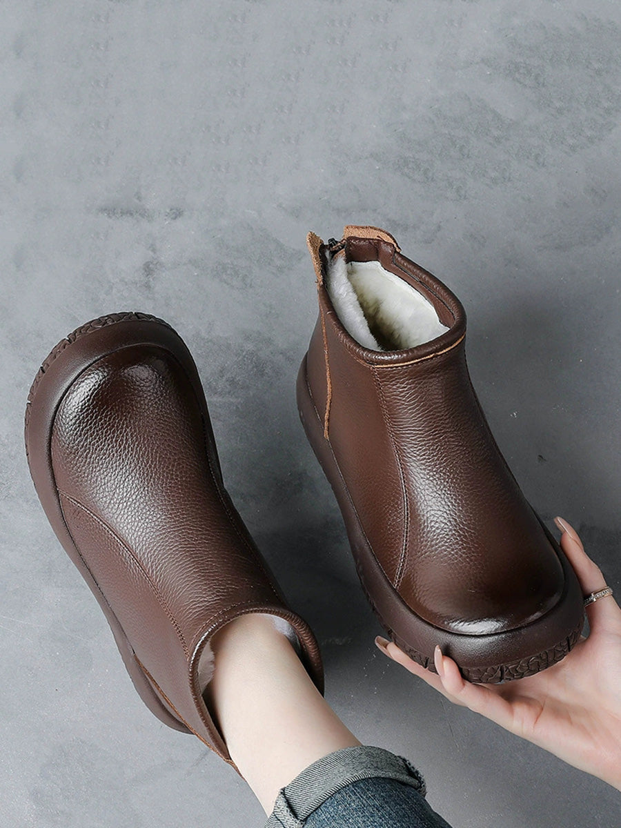 Kvinder Vinter Ankelstøvler i ægte læder med fleecefor