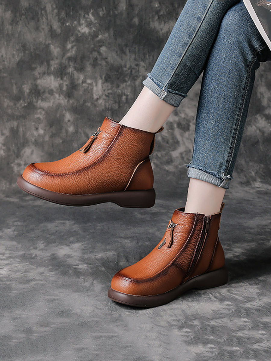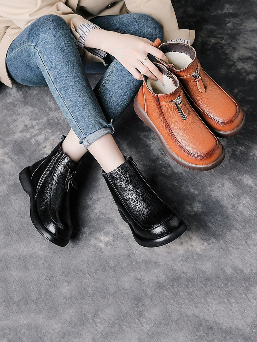 Kvinder Vinter Ankelstøvler i ægte læder med fleecefor