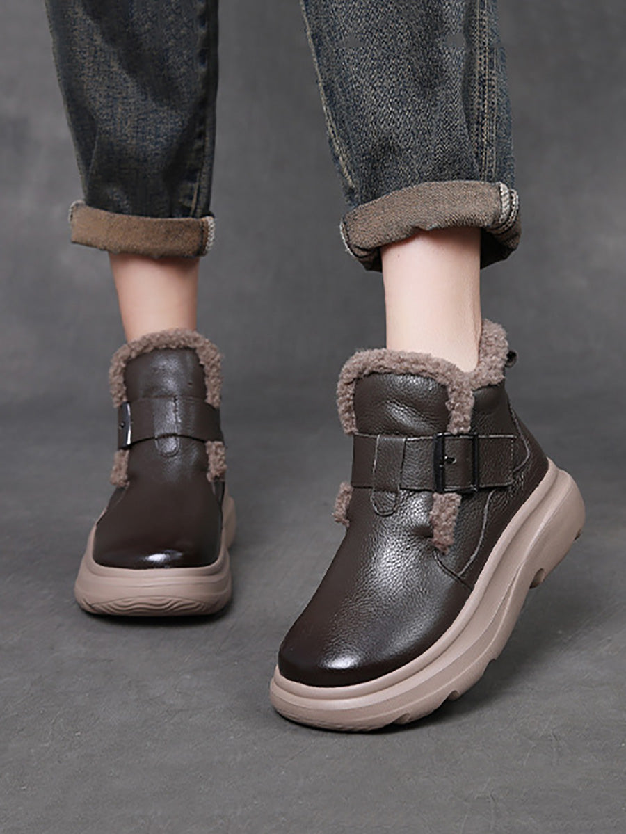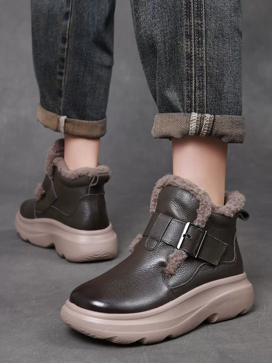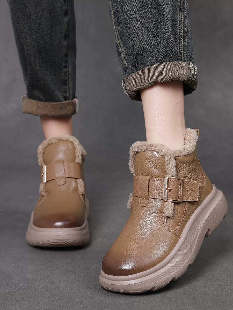 Kvinder Vinter Ankelstøvler i ægte læder med fleecefor