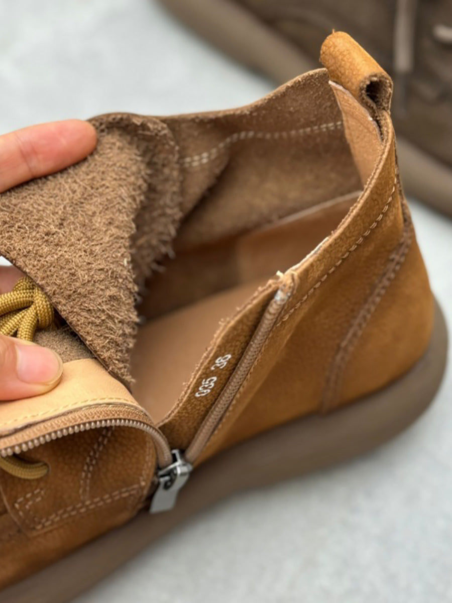 Kvinder vinter ægte læderrem Lynlås flade støvler