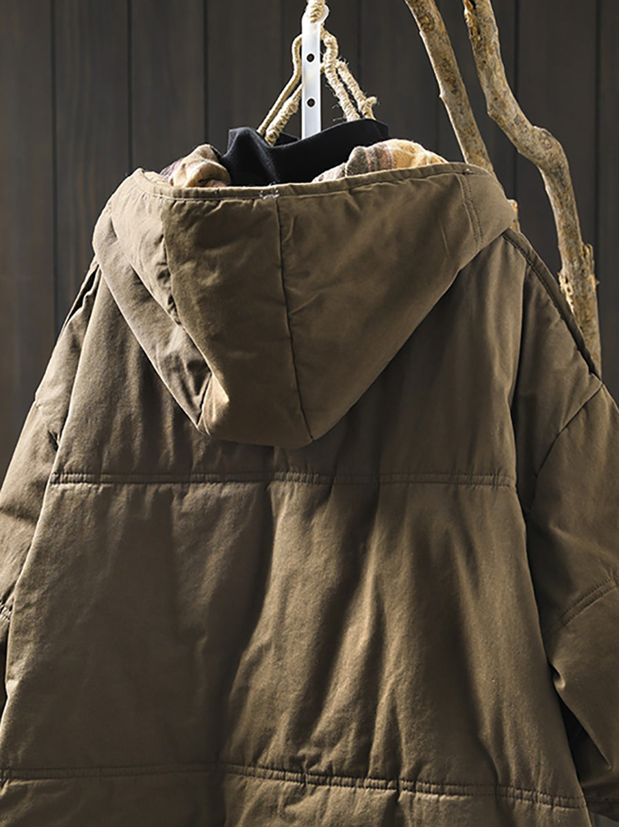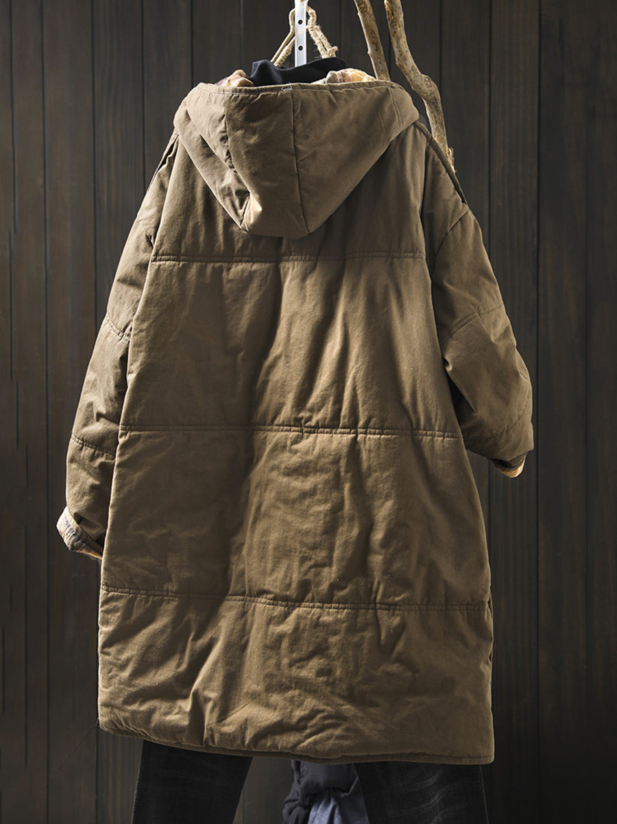 Kvinder Vinter Pure Color Hættepolstret frakke