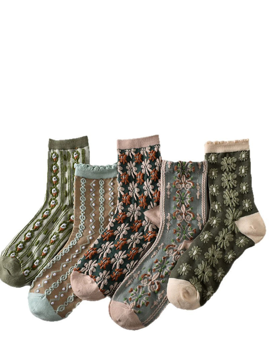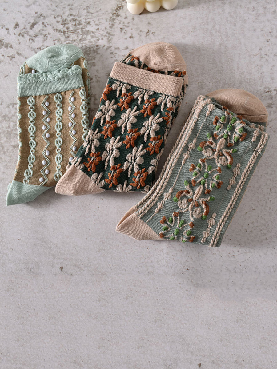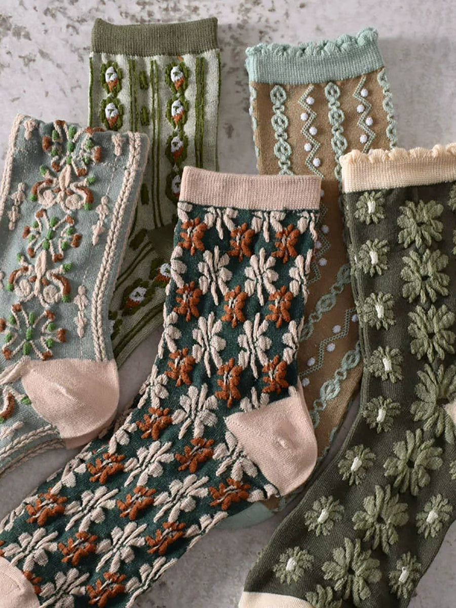 Kvinders vinterstrømper i retro-blomster med jacquard