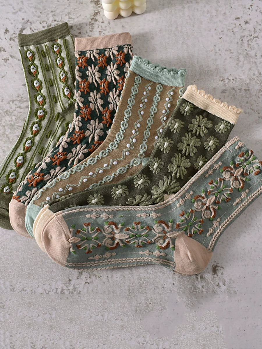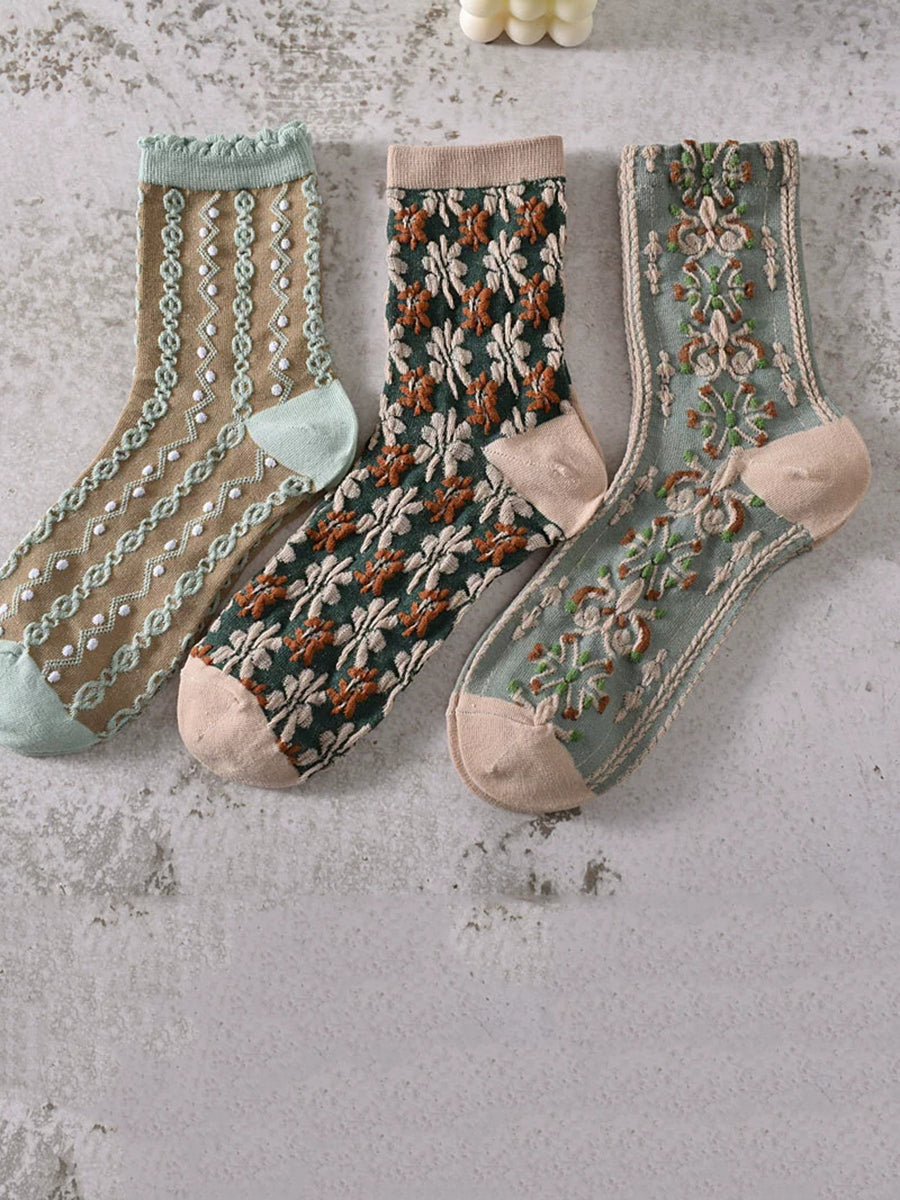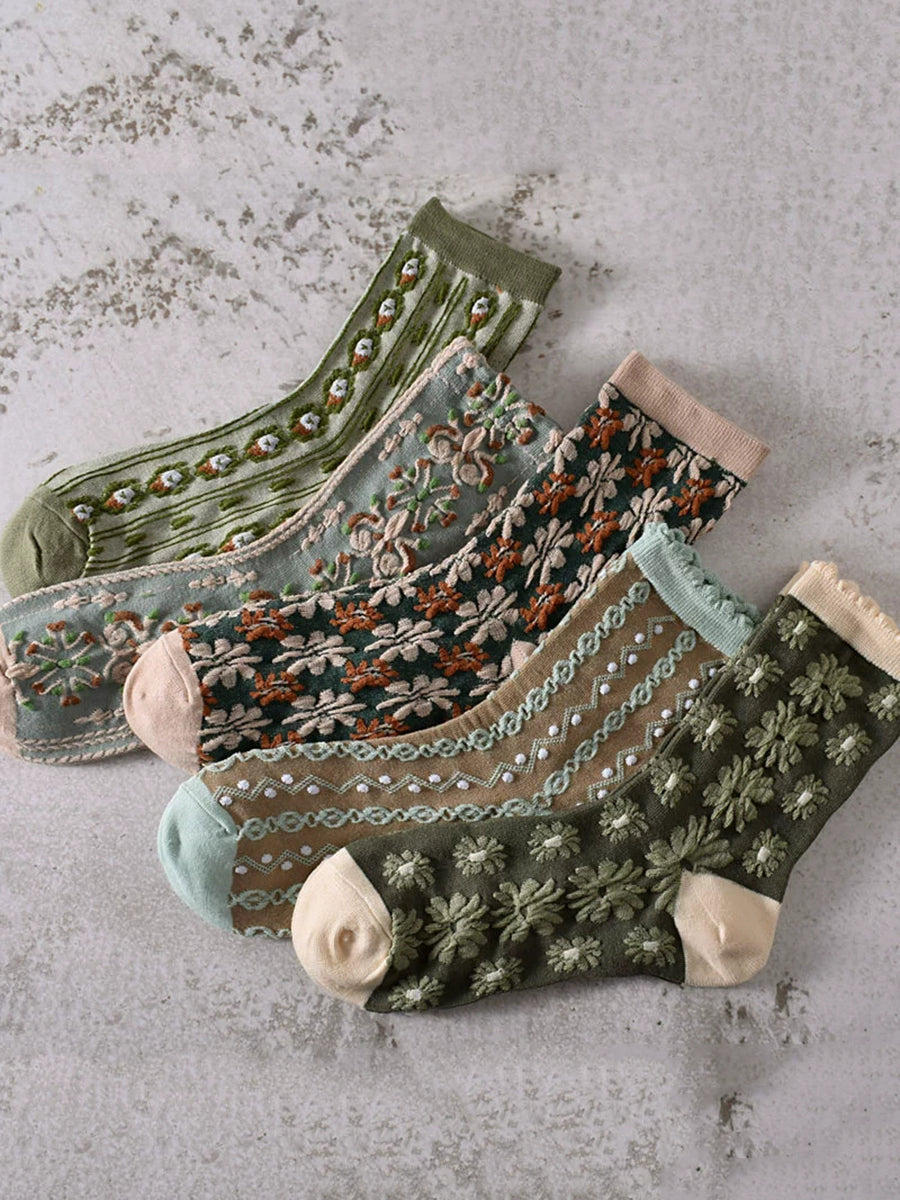 Kvinders vinterstrømper i retro-blomster med jacquard