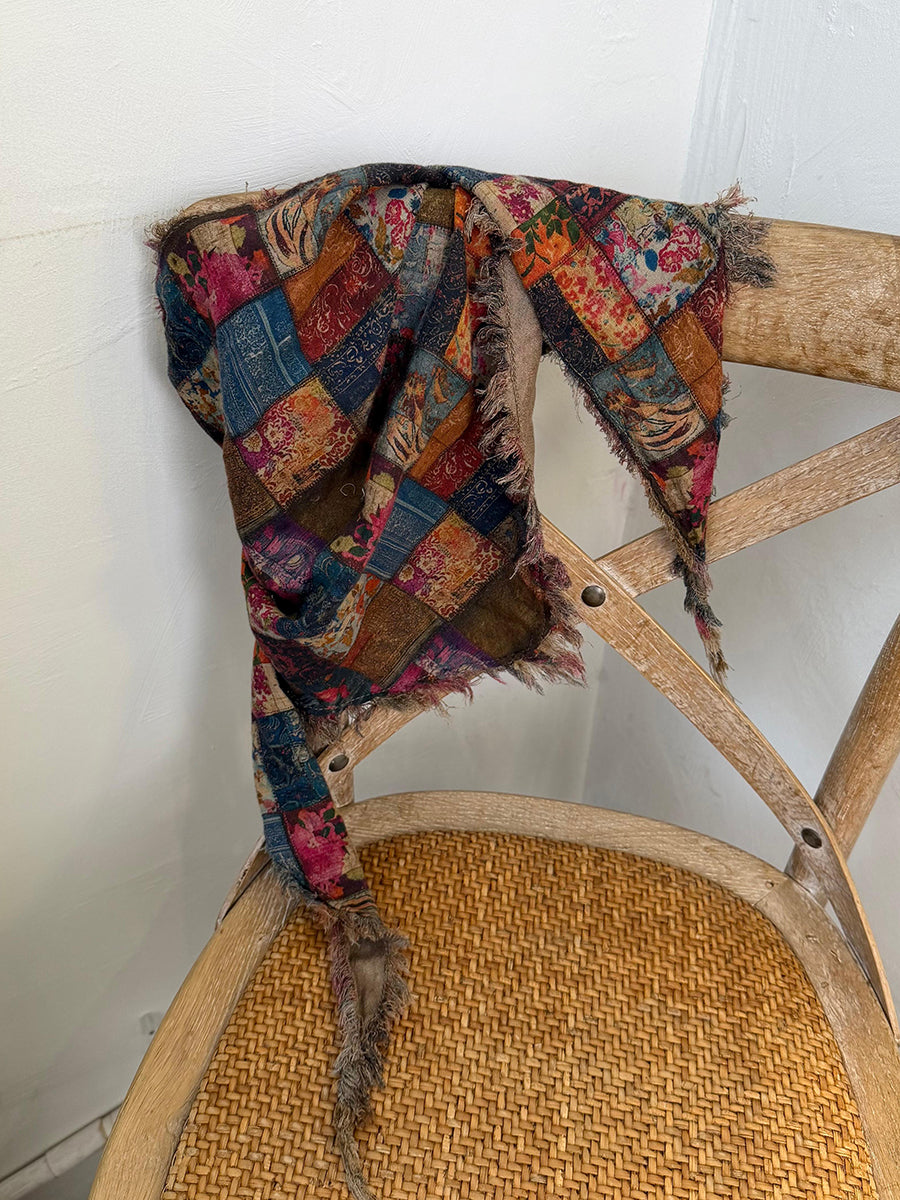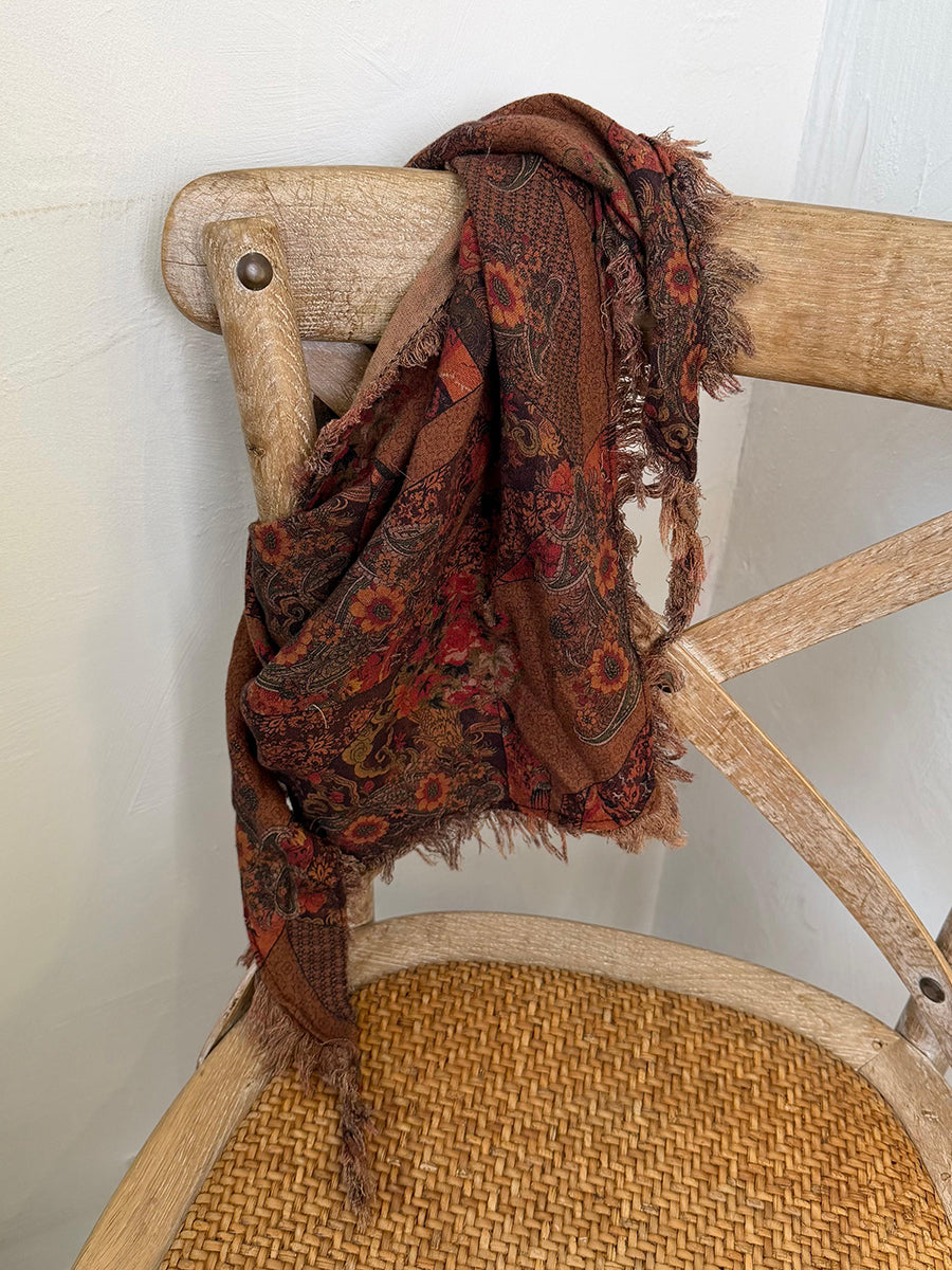 Kvinder Vinter Retro Blomster Patchwork Trekant Halstørklæde