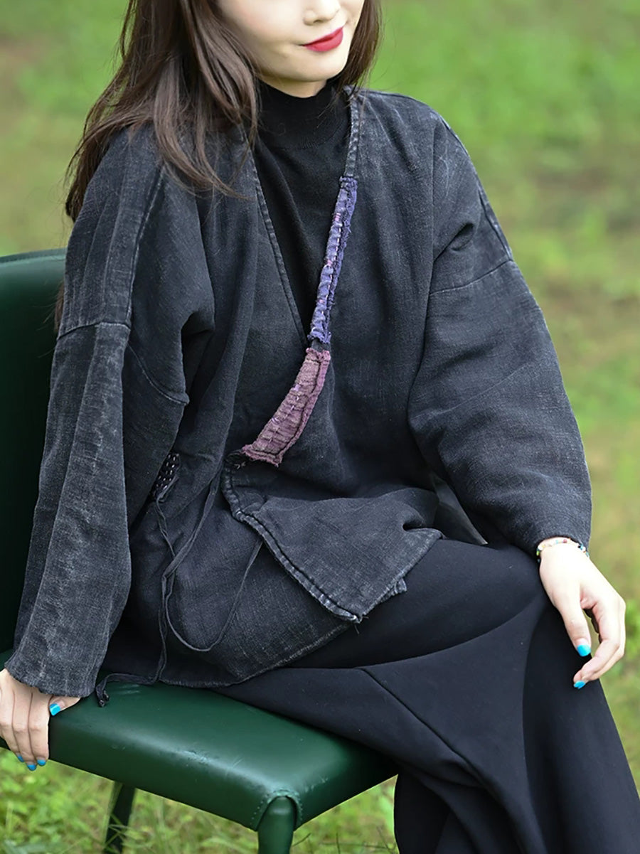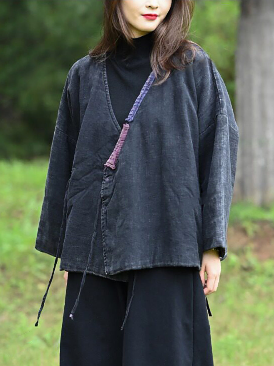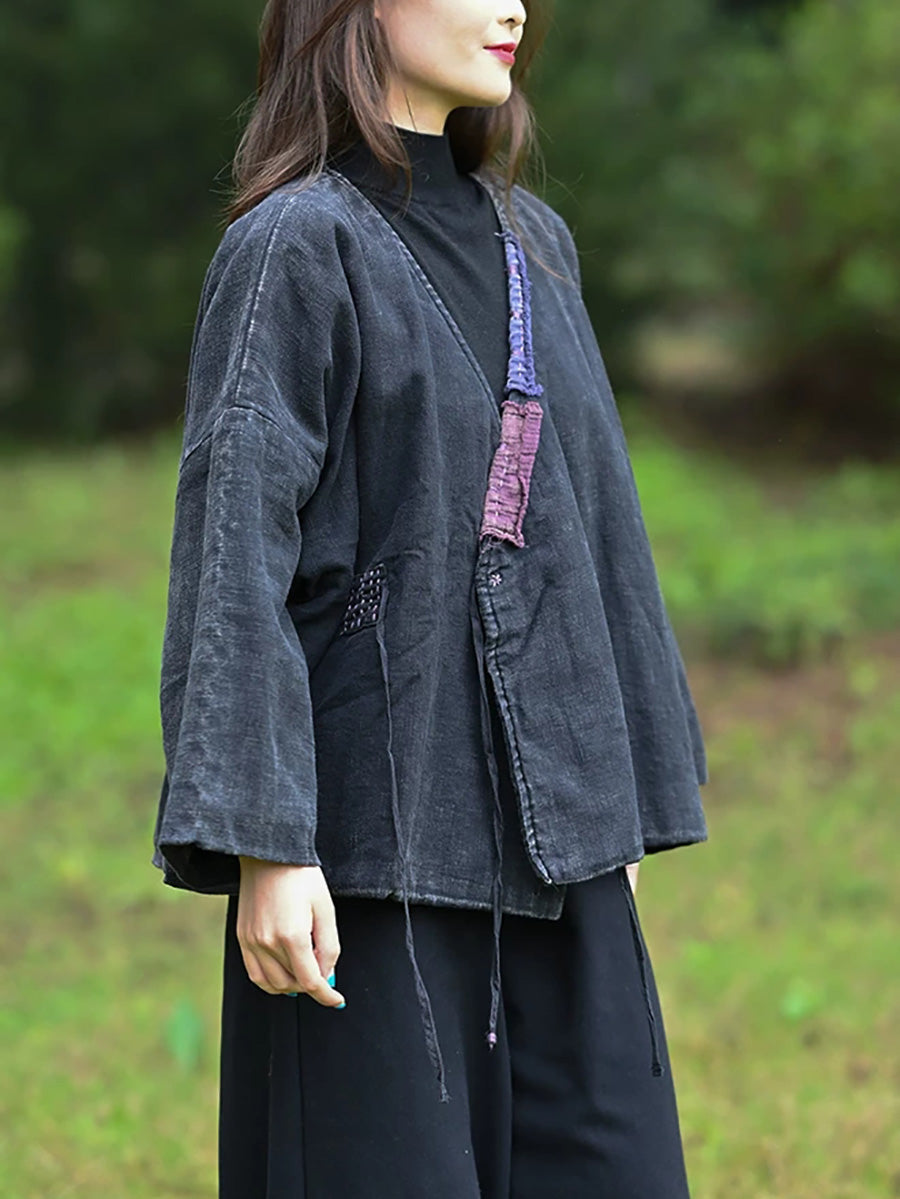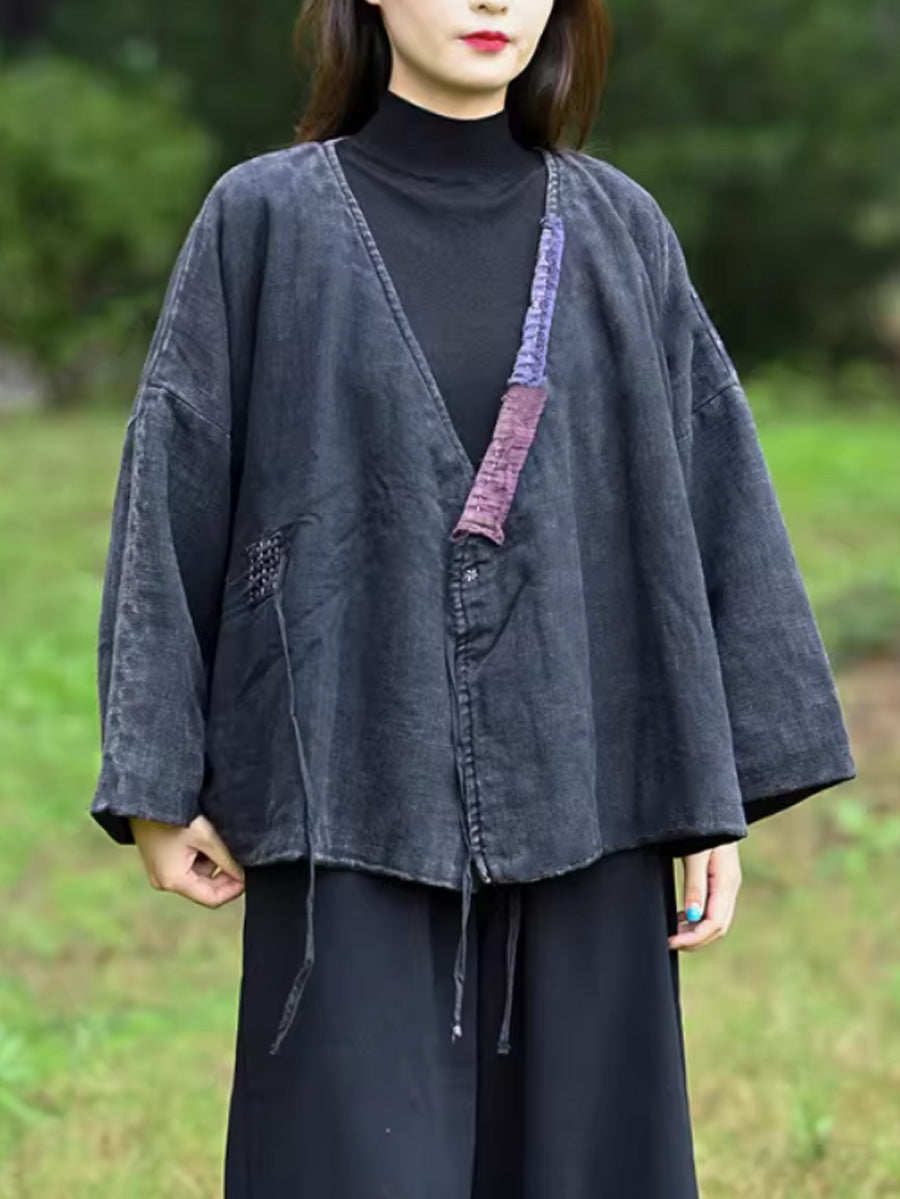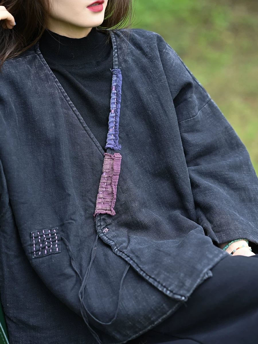 Kvinder Vinter Retro Patchwork V-hals Frakke