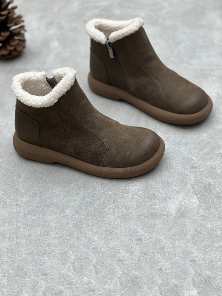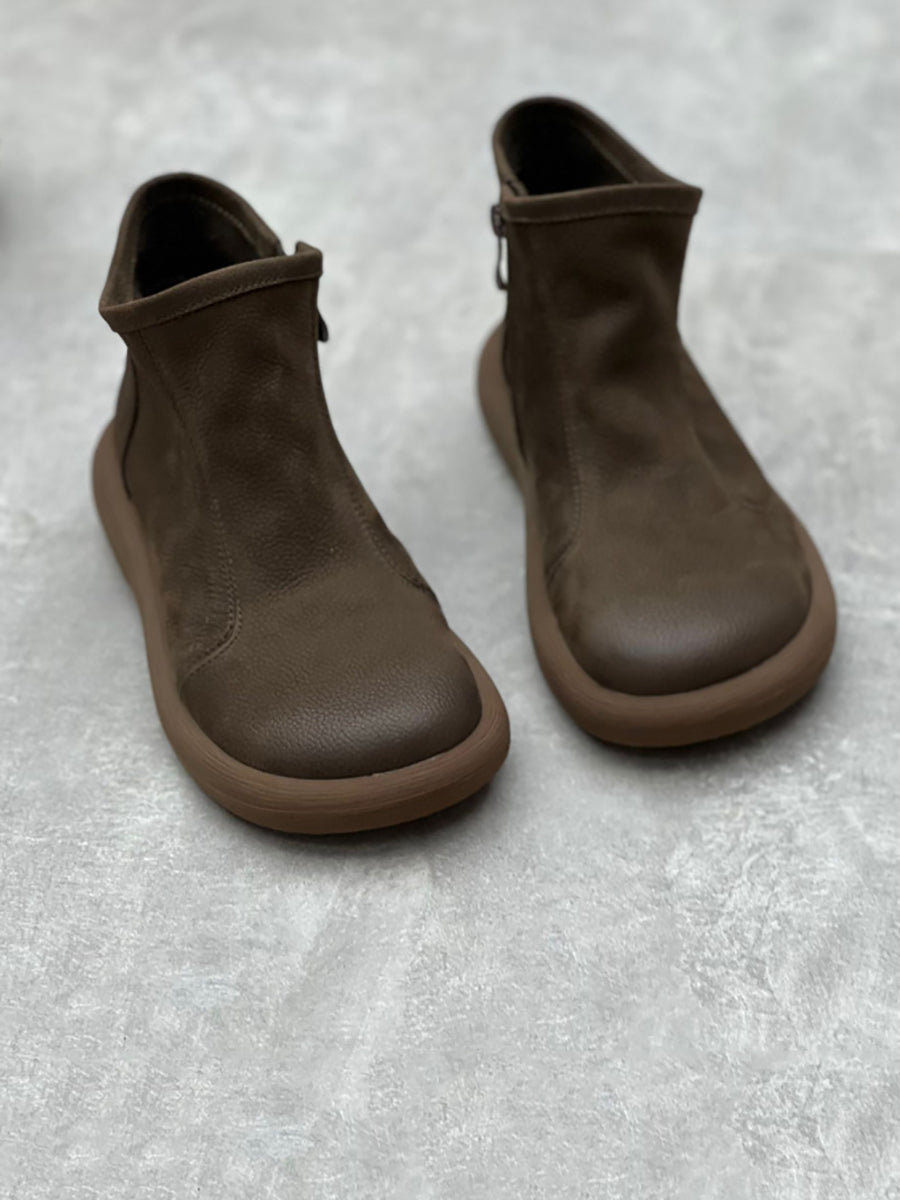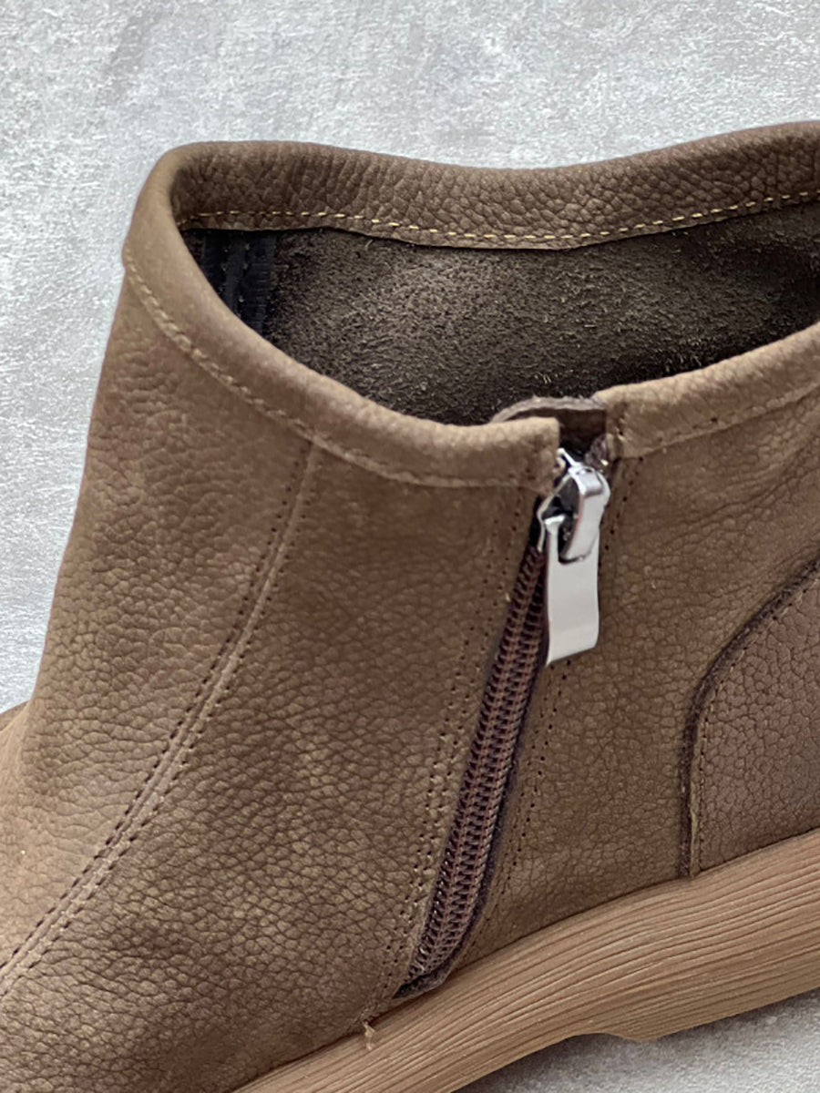 Kvinder vinter Solid blødt læder lynlås flade støvler