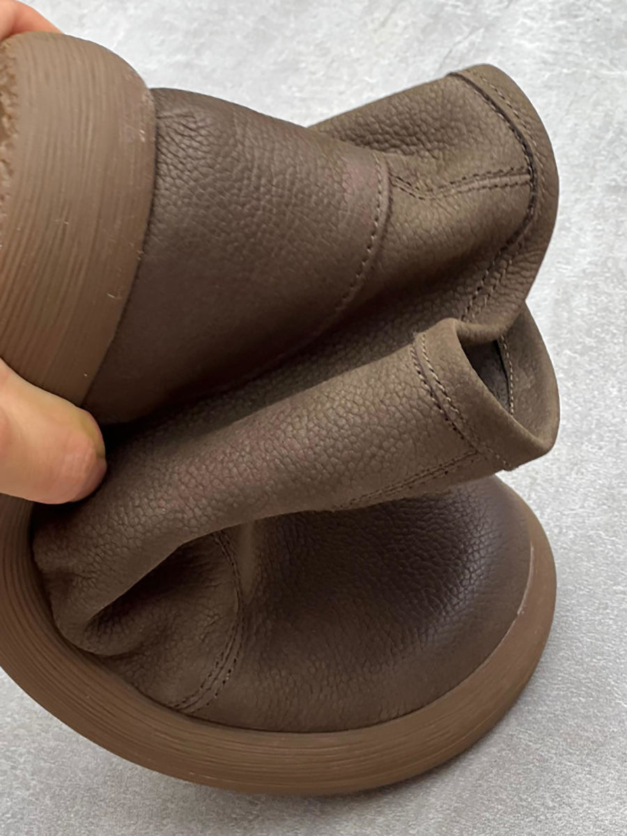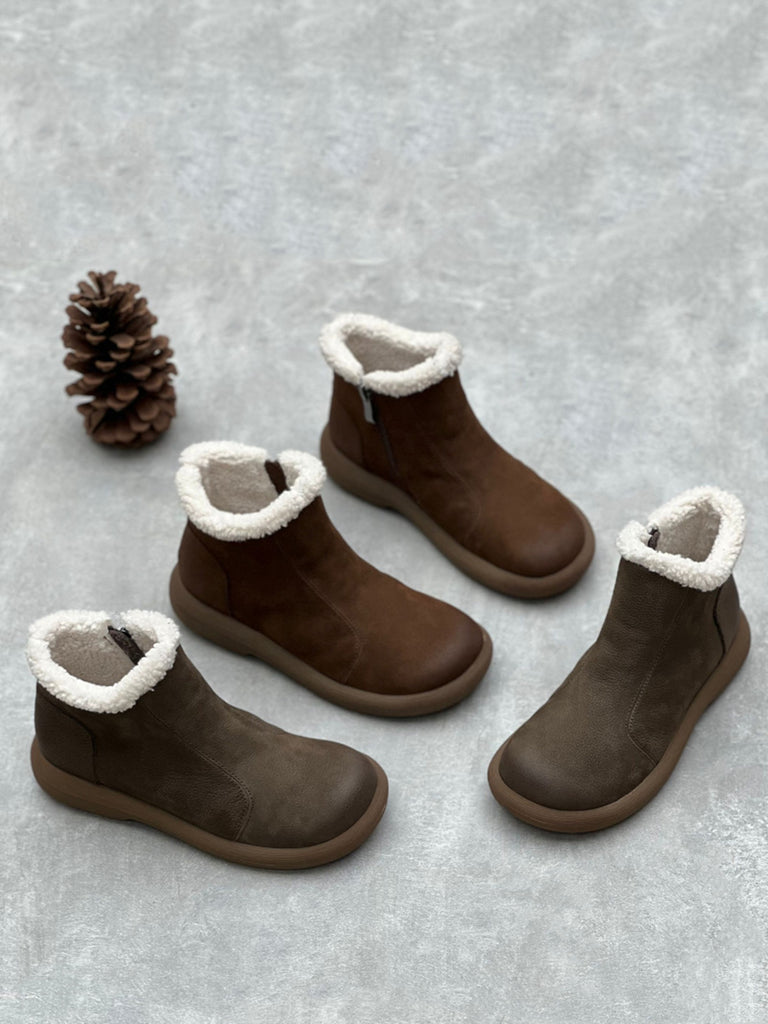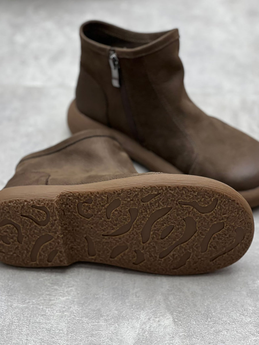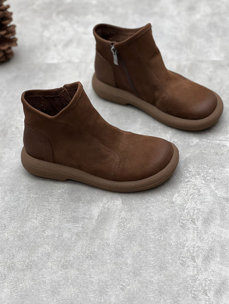 Kvinder vinter Solid blødt læder lynlås flade støvler
