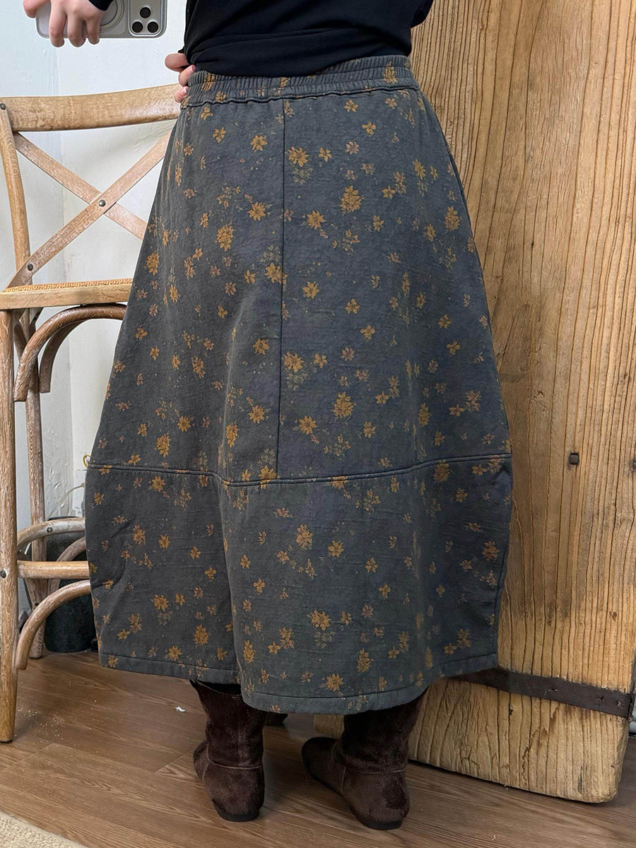 Kvinder Vinter Vintage Blomster Fleeceforet Bomuldsnederdel